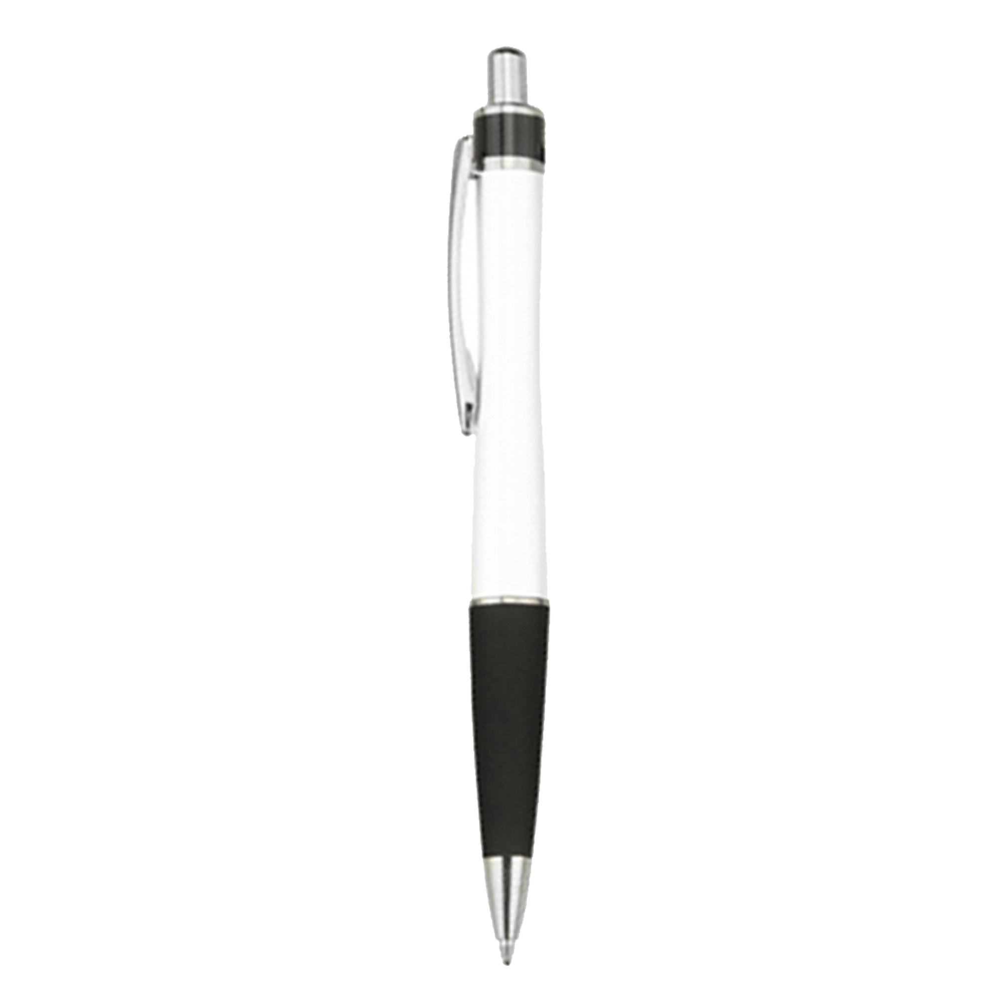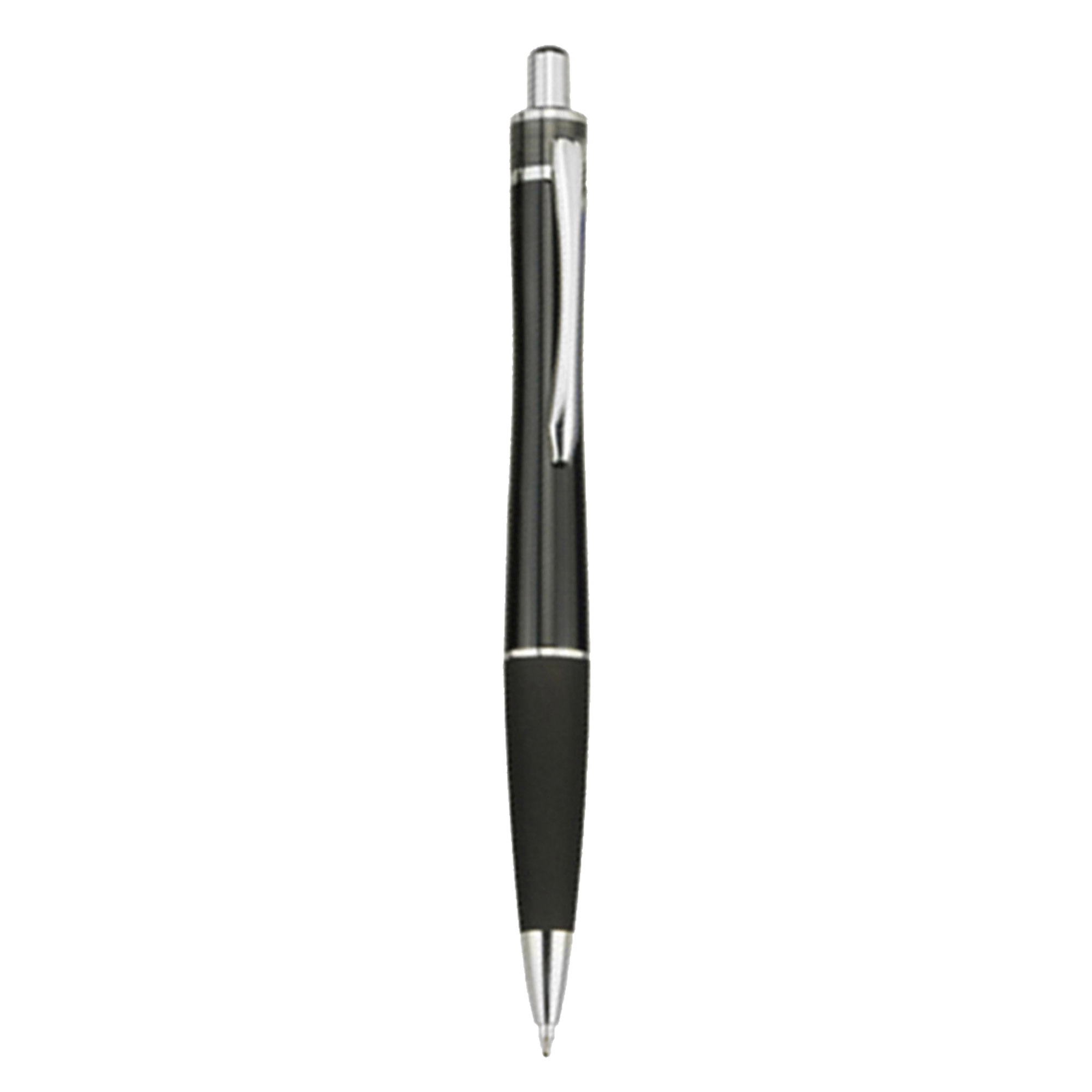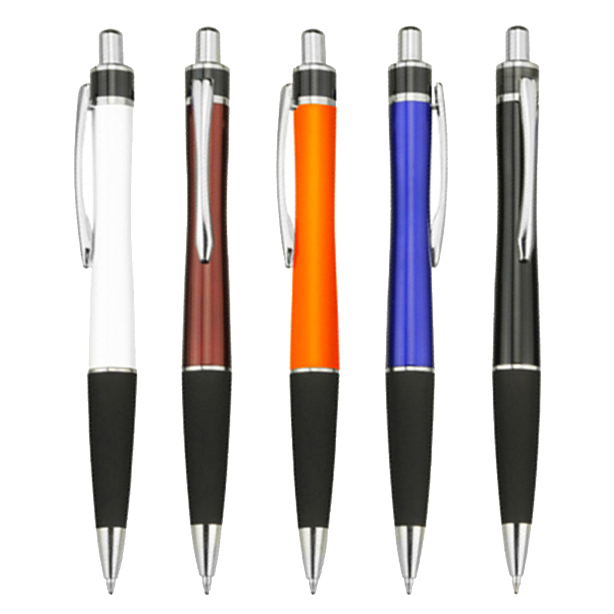 Click action pen. Coloured Barrel with Silver Fittings and rubber grip. Metal Parker-Type black ink refill