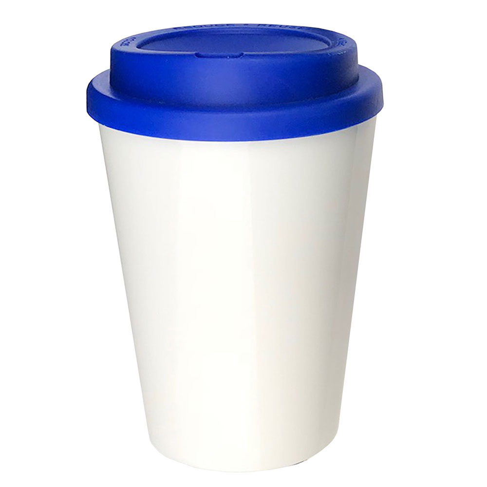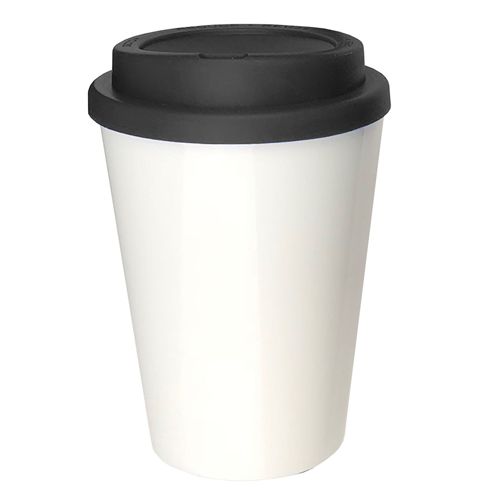 12oz/354ml Double Walled Coffee Cup. Screw Top Lid. Dishwasher and microwave safe. BPA free. Optional Selective Silicon Bands