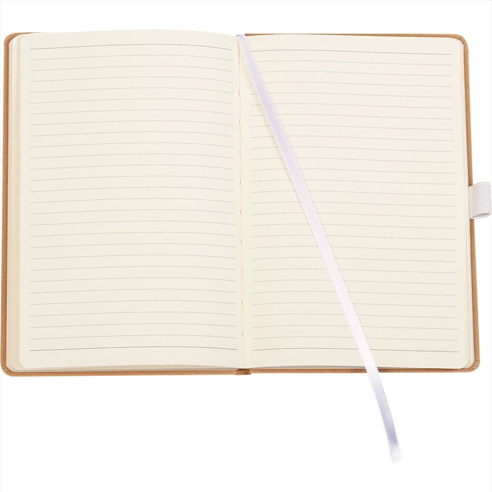 A hard bound cover made from recycled paper and colour accented epage edges for a stylish and more environmentally friendly feel. Ribbon page marker. Expandable accordion pocket. Includes 80 sheets of cream-lined paper. Colour-matching built-in elastic closure and pen loop.