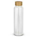 Sophisticated 600ml borosilicate glass drink bottle which has a trendy screw on bamboo lid.