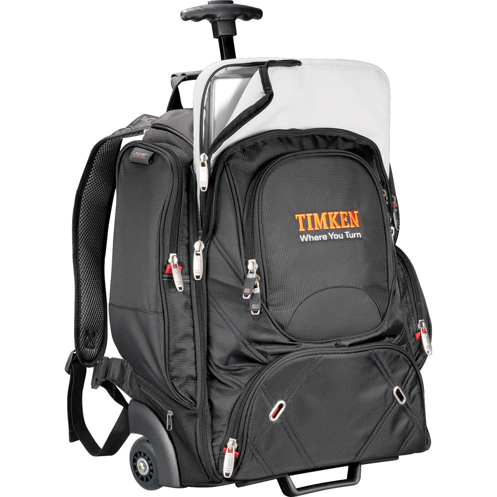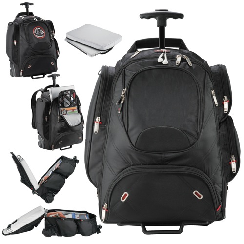 Main zippered compartment includes TSA-friendly laptop compartment expediting airport security. (Pens, Laptop and other devices shown are not included).