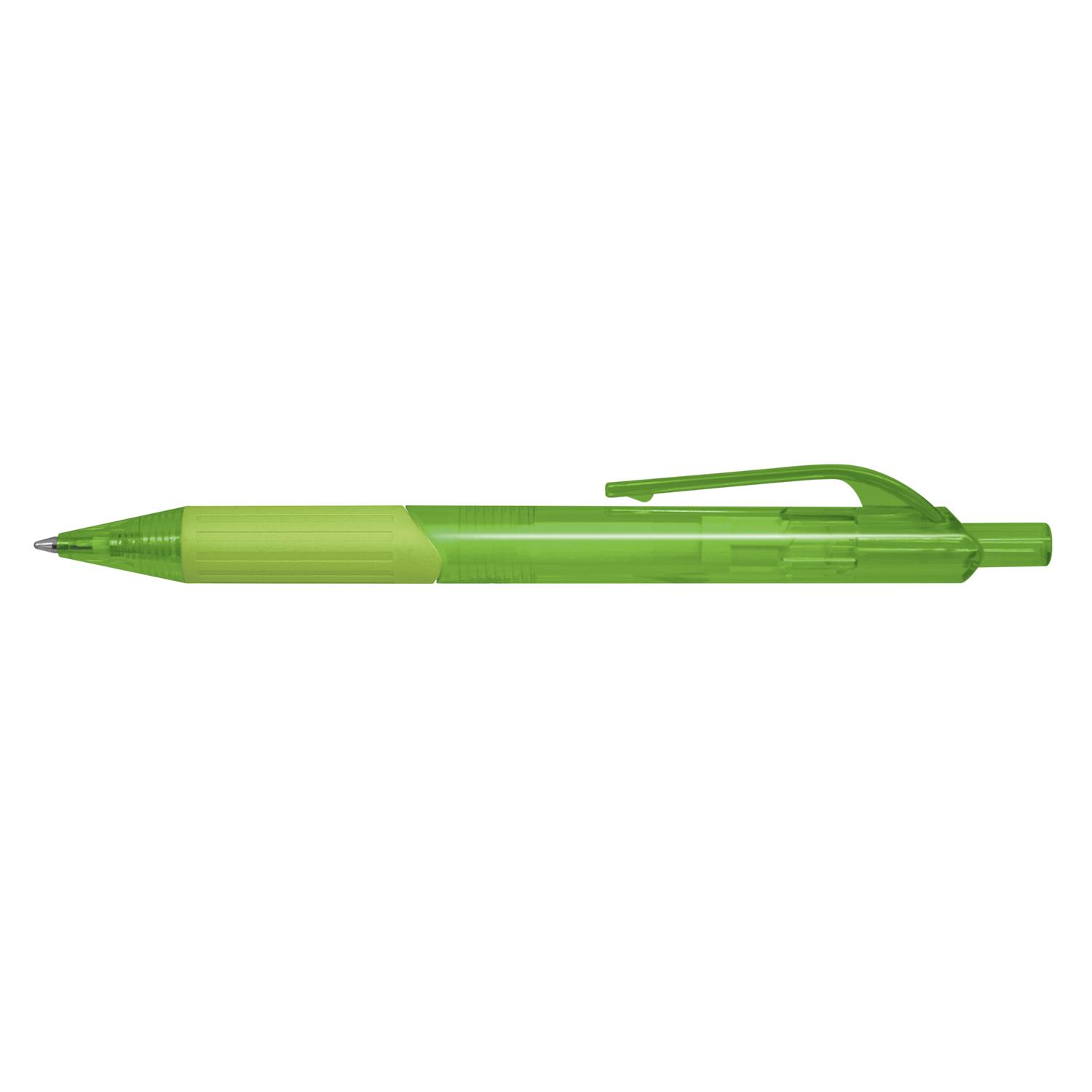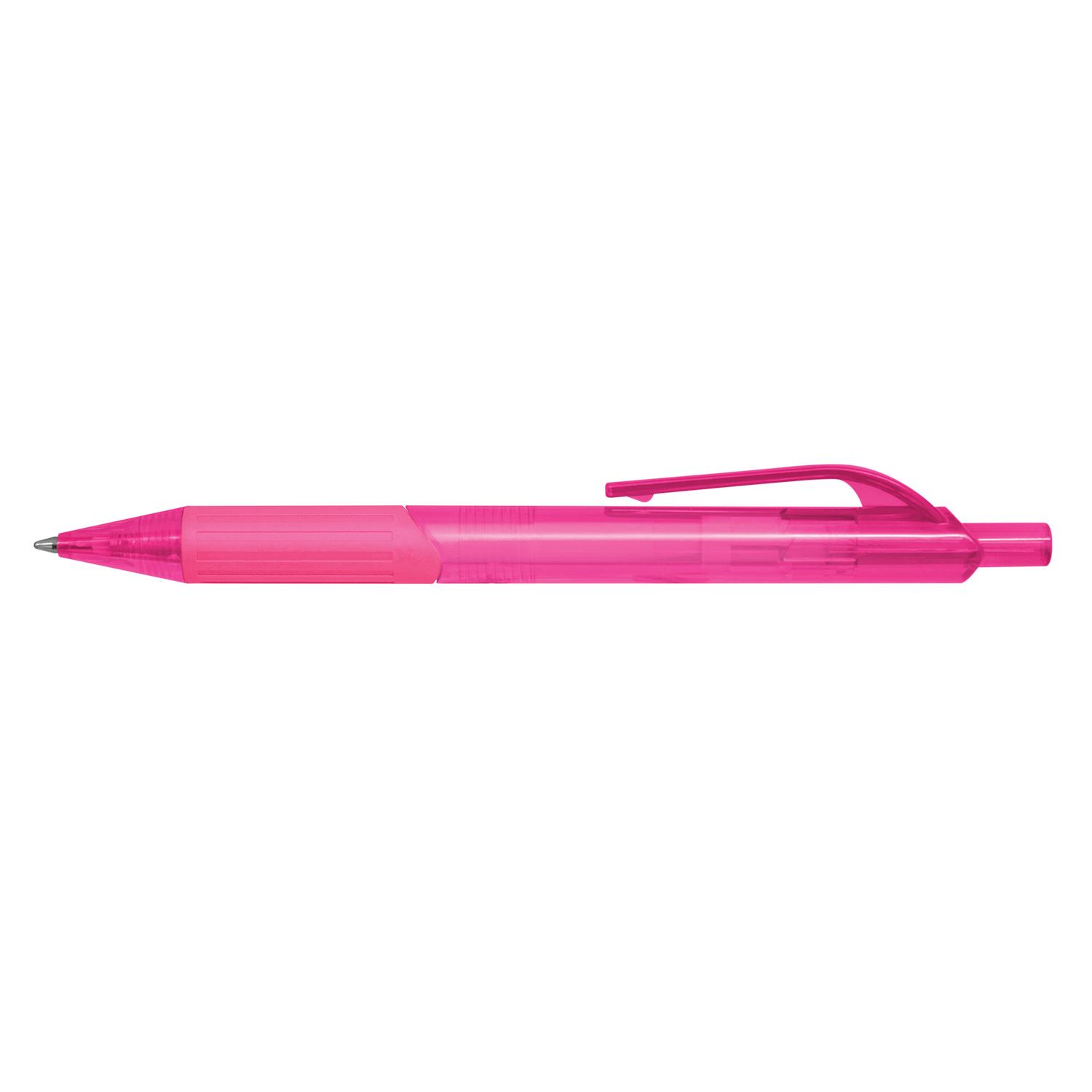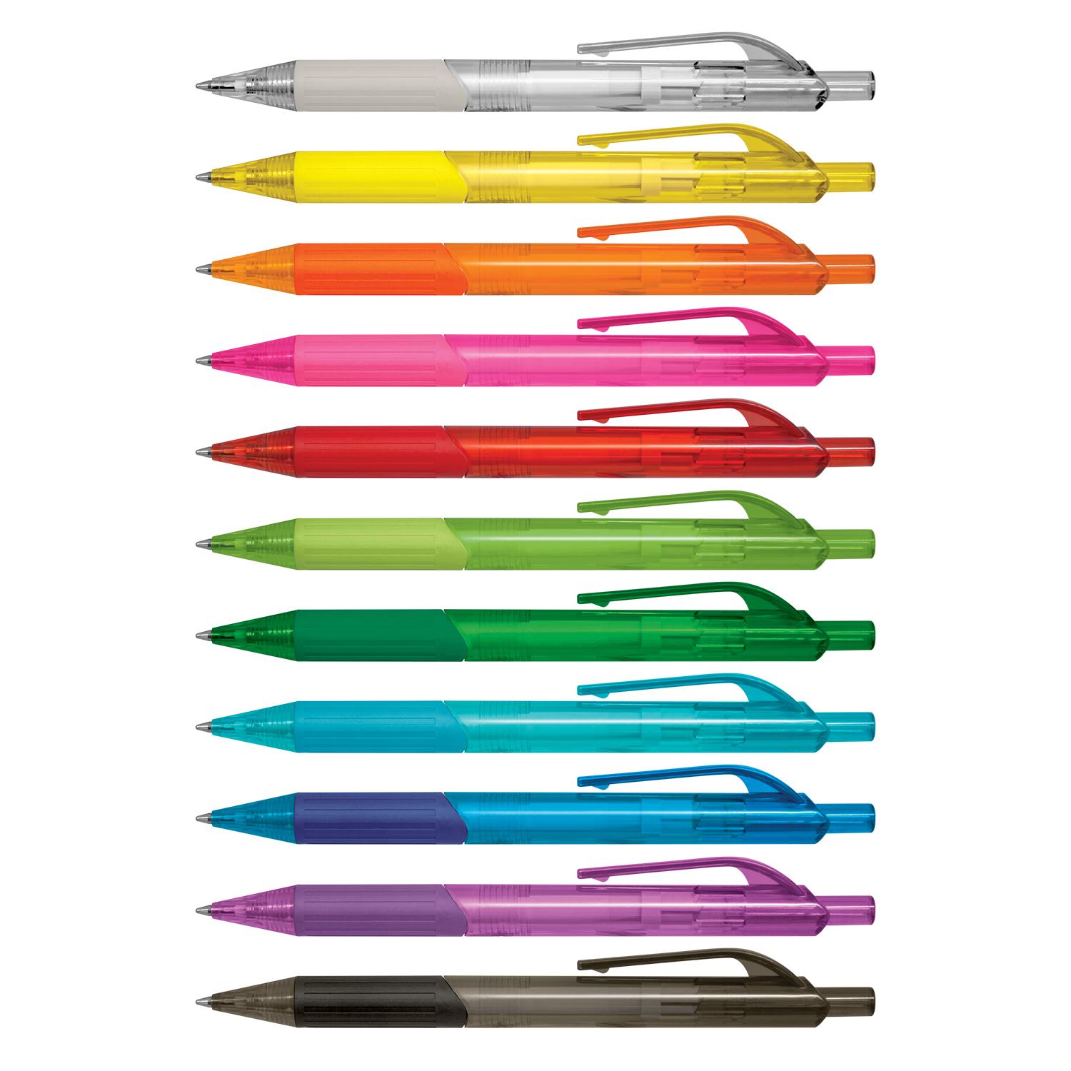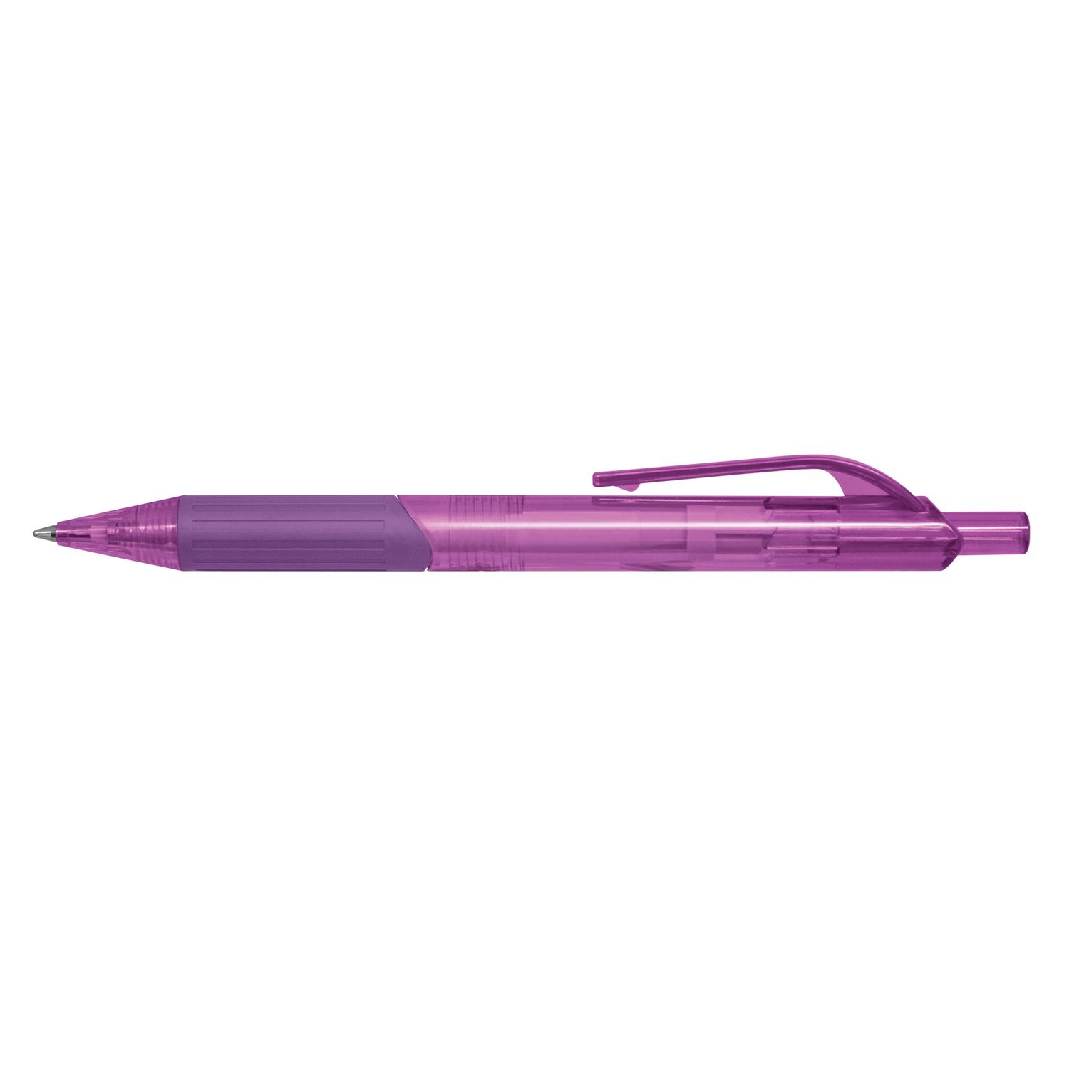 Retractable plastic ball pen with a translucent barrel and a soft rubber grip. It has a Black ink large volume refill with 1800 metres of German manufactured DOKUMENTAL ink and a tungsten carbide ball for improved writing quality. Blue ink is available for an additional charge. . Decoration options: Pad Print | Direct Digital