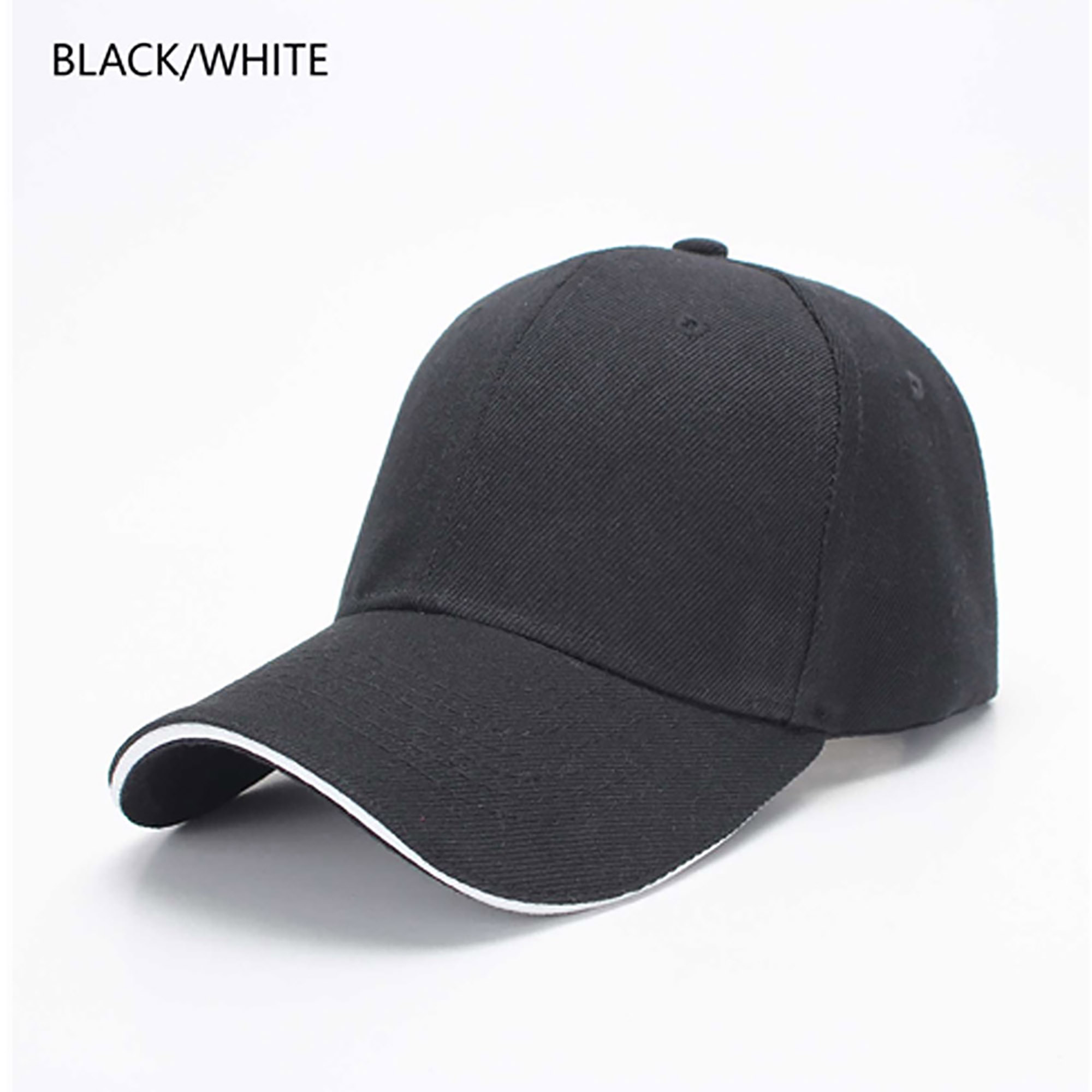 Structured six panel, 100% heavy twill acrylic cap with white trim in the pre-curved sandwich peak, embroidered eyelets, and an adjustable velcro short touch strap which fits most of people. For 3D Embroidery, logo must be simple and large, please check with us before place order. One size fits most people.