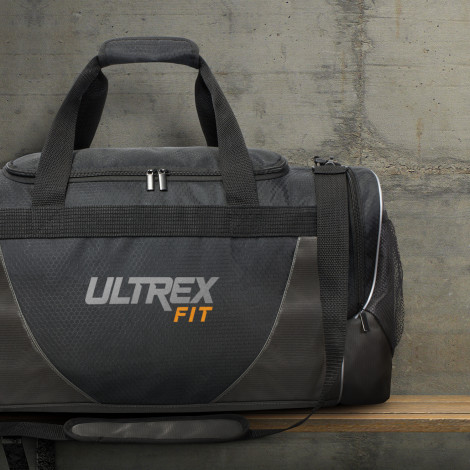 Superior large duffle bag which is manufactured from gunmetal coloured 600D polyester with decorative black ripstop nylon accents and smart silver piping. It has strong woven carry handles with a Velcro cuff and a woven shoulder strap which is adjustable and removable. Excelsior has two zippered external pockets, one of which is a shoe bag that can also be used for wet gym gear etc. Other features include an external mesh pocket, a sturdy internal base board and strong external plastic feet.