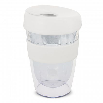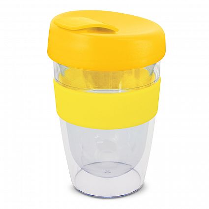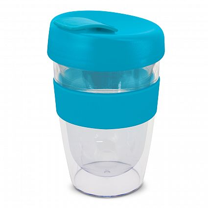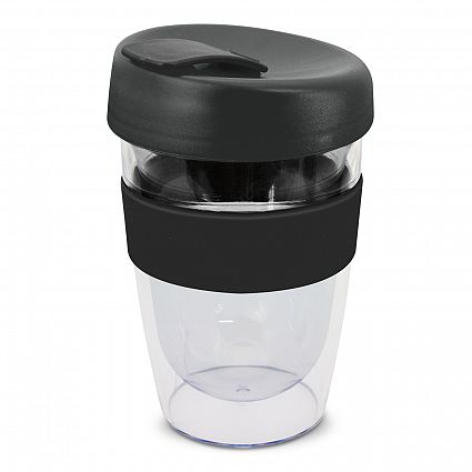 330ml double wall reusable coffee cup which will keep drinks hot for longer. It has a silicone band and a secure screw on lid with a splash proof flip closure. The cup is manufactured from crystal clear AS plastic and the lid is polypropylene. Both materials are BPA free. The lid, flip closure and band can be mixed and matched in any colour combination from the colour palette at no extra cost. Up to five different colour combinations are included in the price and more are available for an additional charge. It can be presented in an optional black gift box and handwashing is recommended. Express Cup Leviosa is protected under New Zealand Design Registration No. 419451 and Australian Design Registration No. 361937.