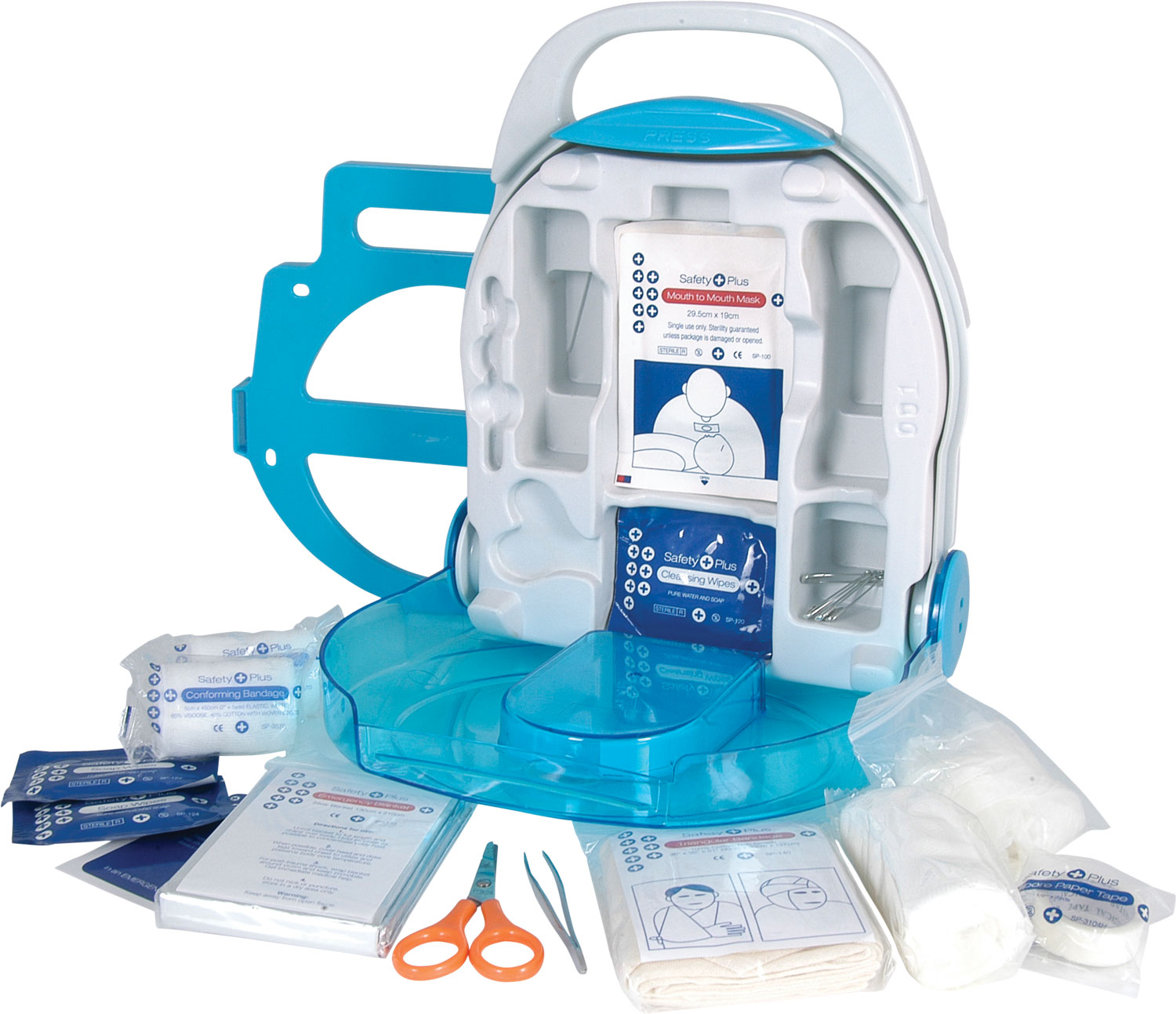 Comprehensive, wall mounted/ carry first aid kit, ideal for home or office use. Complete with wall bracket and detachable plaster container.