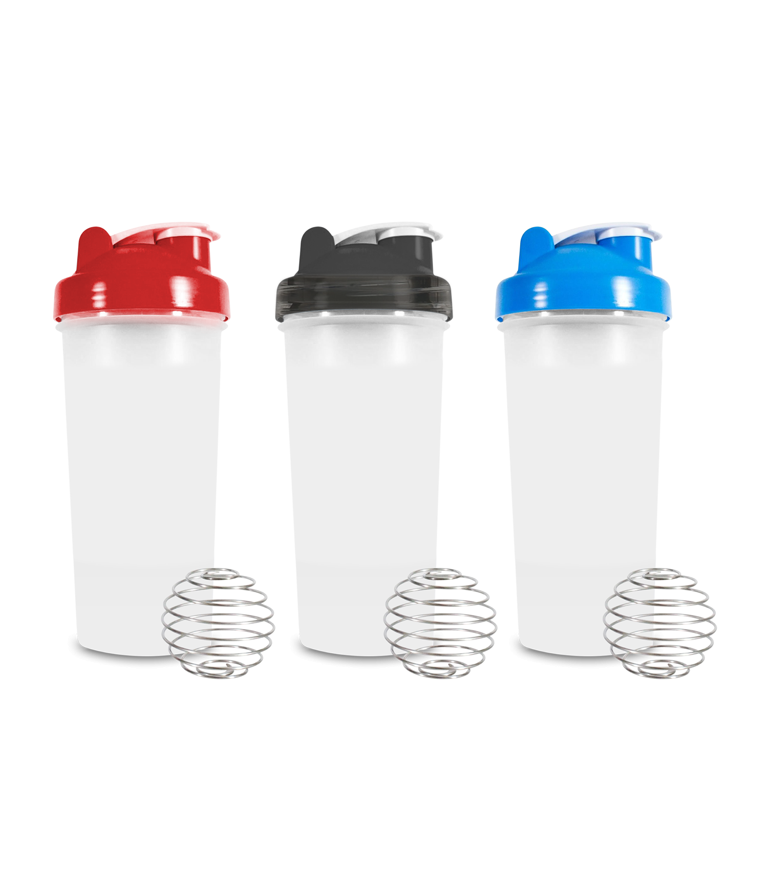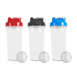 600ml Protein shaker in clear bottle with coloured lid and metal ball.