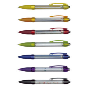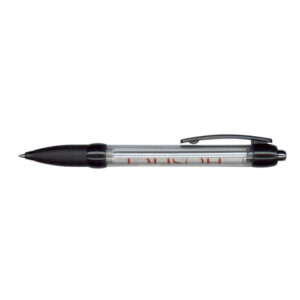 Retractable plastic ball pen with a Clear barrel, a translucent soft rubber grip, translucent trim and a unique spring loaded, pull out flag which can be branded in full colour on both sides. Blue or Black ink refill with 1200 metres of German manufactured DOKUMENTAL ink and a tungsten carbide ball for improved writing quality. Flag is only available on indent for a minimum of 1000pcs. Includes full colour printing on both sides of the flag. Decoration options: Screen Print | Offset Print