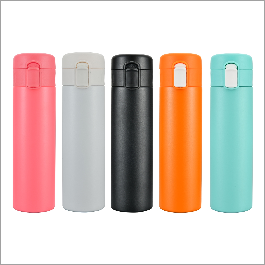 500ml , powder coating paint body with lockable lid , push open button. High grade stainless steel inside. copper plated insulation, keep hot and cold at least 8-12 hours. BPA FREE
