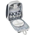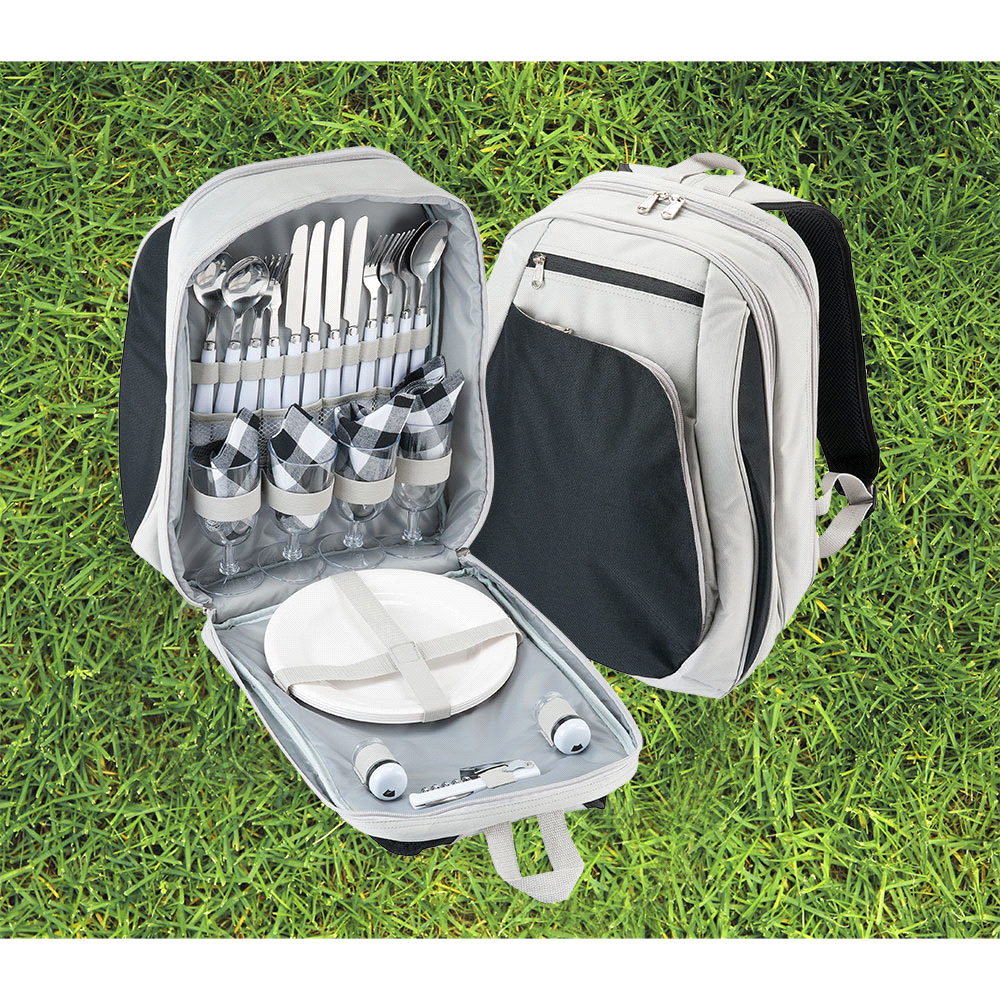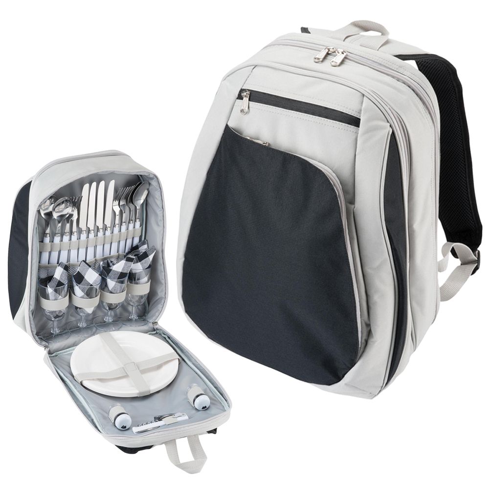 Manufactured from 600D polyester with insulated main compartment this backpack comes with a four person picnic set.