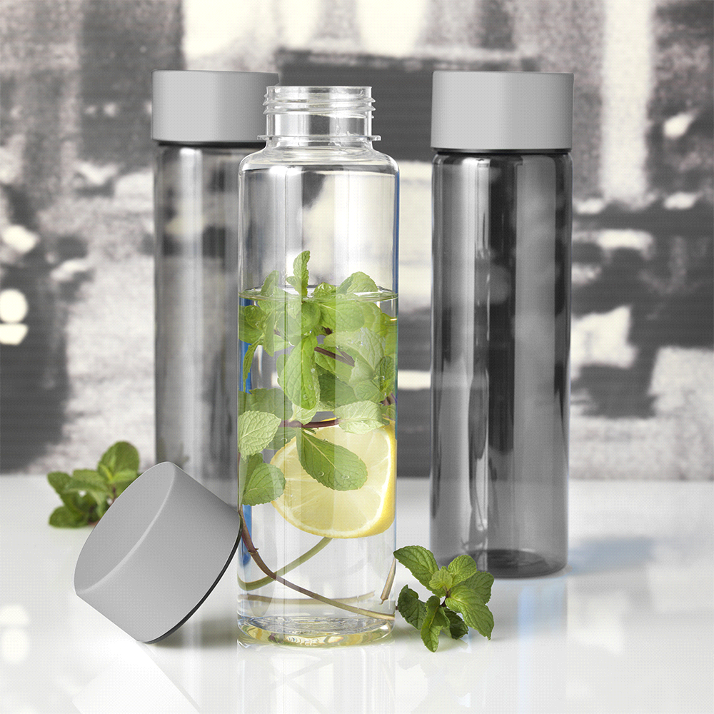 Modern design bottle with twist-on spill resistant lid. Shatter, stain and odour resistant. Wide mouth opening for easy cleaning and filling.900ml capacity.