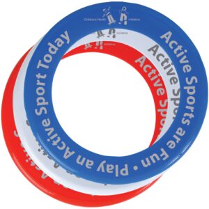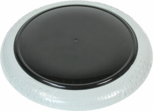 Plastic frisbee with contrasting coloured flexi edge.