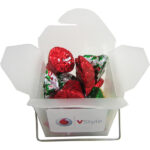 Frosted Noodle Box with Christmas Chocolates 85g. Gold Bow Adhered Christmas Star Chocolates x12 (Sticker)