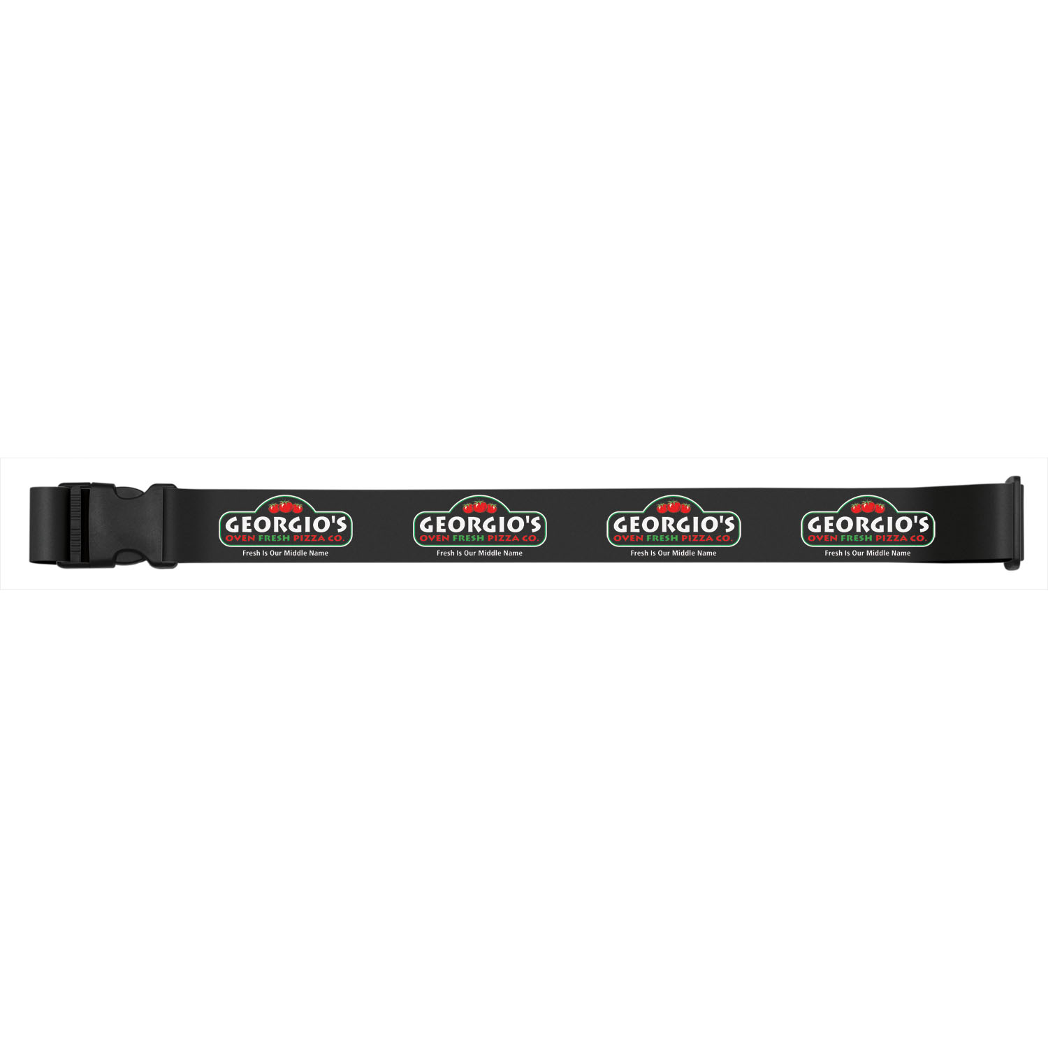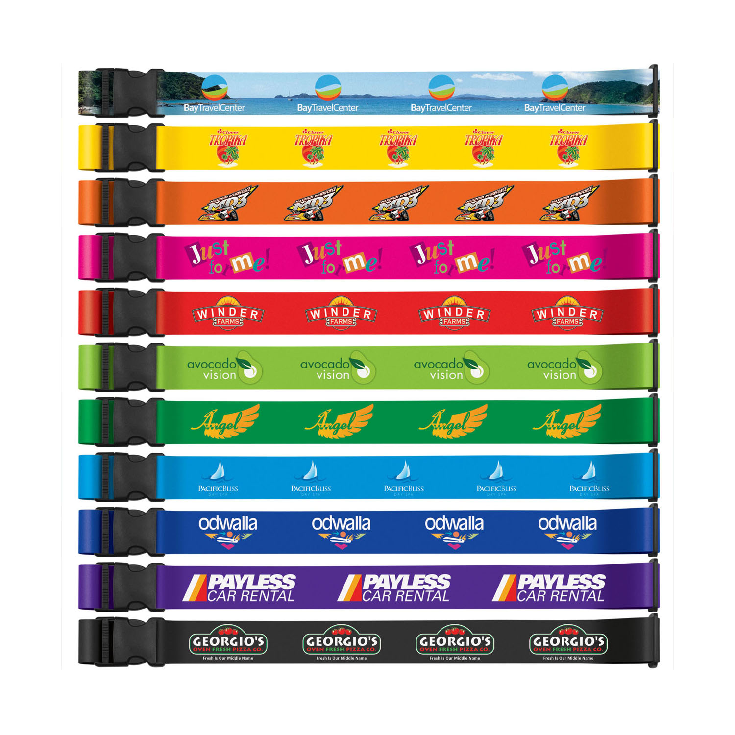 Ultra strong luggage strap which is fully adjustable and will fit even the largest suitcase making identification easy at airports. It is branded on both sides and a lead time of 15 working days applies to this product. Includes full colour printing on both sides. Decoration options: Sublimation Print