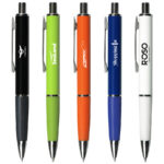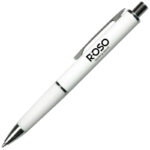 Push action aluminium barrel with rubber patterned grip and silver trim. Black German ink refill with 2,300m writing distance.