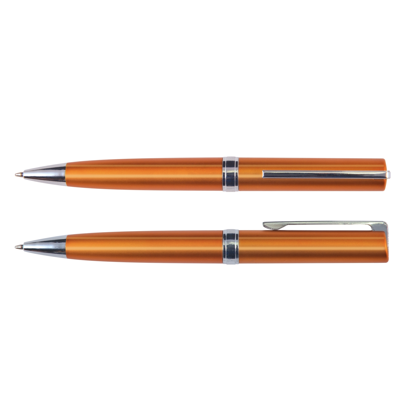 Coloured metallic barrel twist action ballpoint pen with chrome highlights. Optional black suede velvet pouch. Writing distance: 2.1 kilometres. TC roller ball. Nero pigment ink.