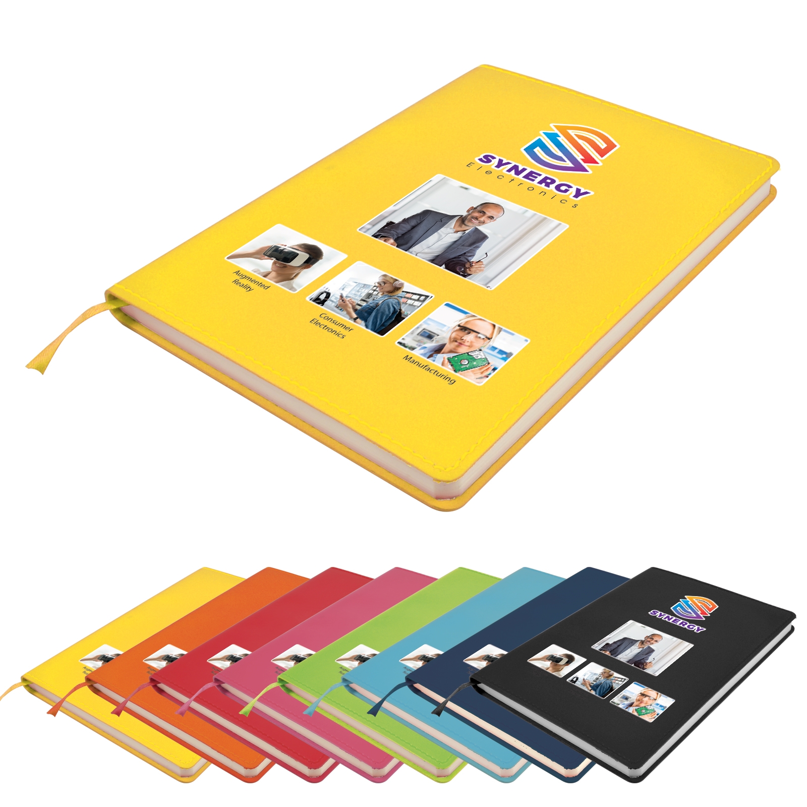 Soft PU cover A5 Notebook with ribbon page maker and matching colour edge stitching. 96 lined cream pages (70GSM).