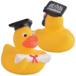 Rubber (PVC) bath duck with morter board, scroll and squeaker. Can be moulded in standard duck yellow or nominate a Pantone colour and we'll match within 10% plus or minus of your Pantone® colour choice.
