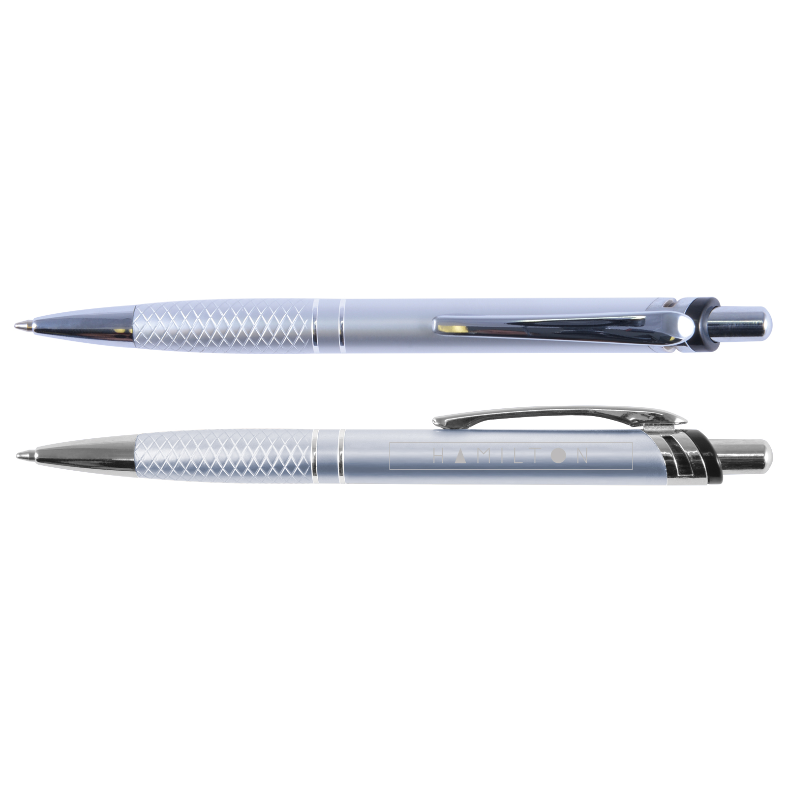 Aluminium barrel ballpoint pen with Silver accents. Optional black suede velvet pouch.Writing distance: 2.1 kilometres. TC roller ball. Nero pigment ink.