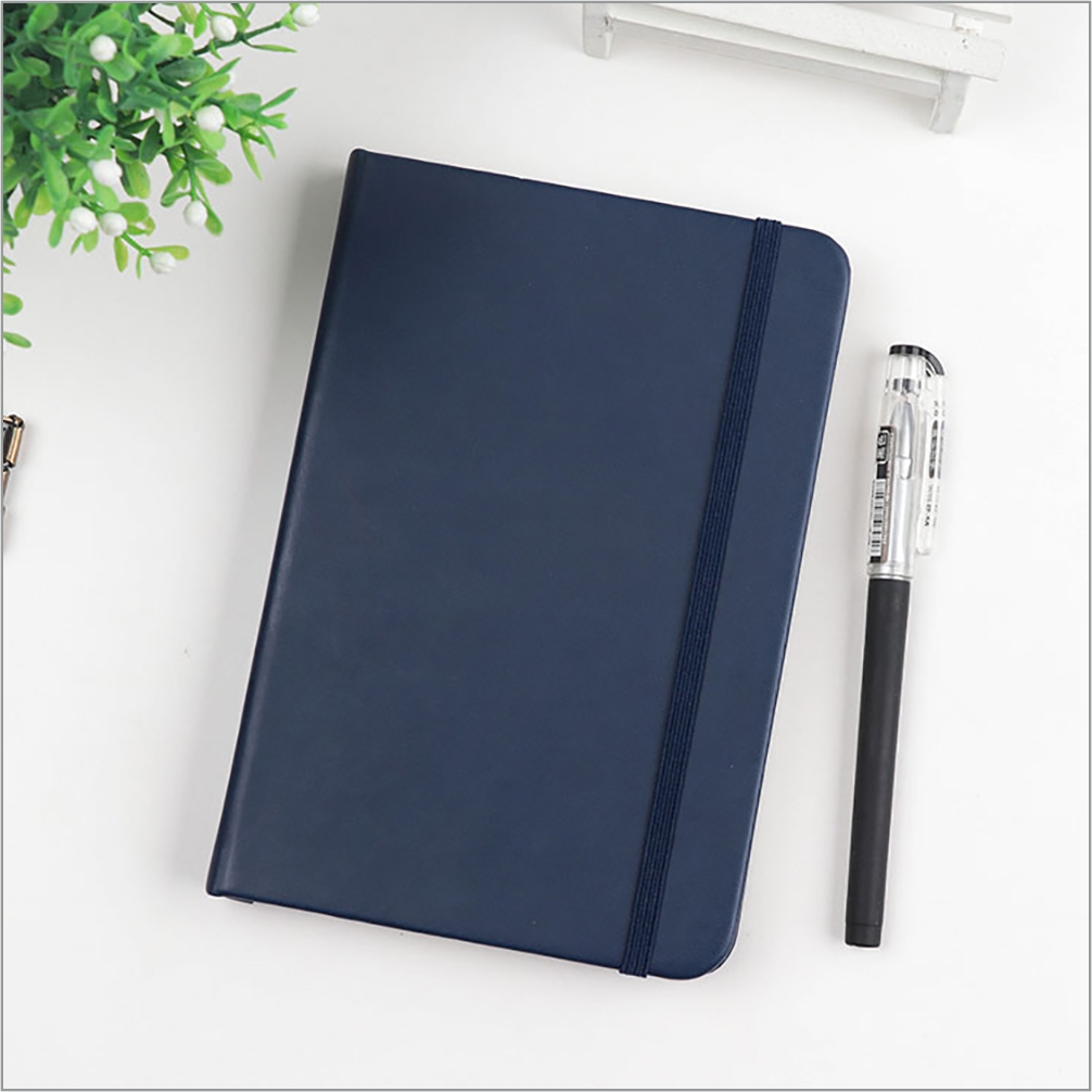 Hard Pu cover notebooks. Coloured elastic retaining closure and ribbon page marker. Includes 80 leaves of white lined paper, Black, white, navy(pms534), mid blue(pms7194), royal(close to pms 288), bottle(pms341), grey(pms877), orange(pms165), bright green(pms2269), pink(pms205), yellow ( pms 108), purple(pms medium purple), red( pms179), Note: the colours are all in matt finish, the pms colose just close match for a guideline.