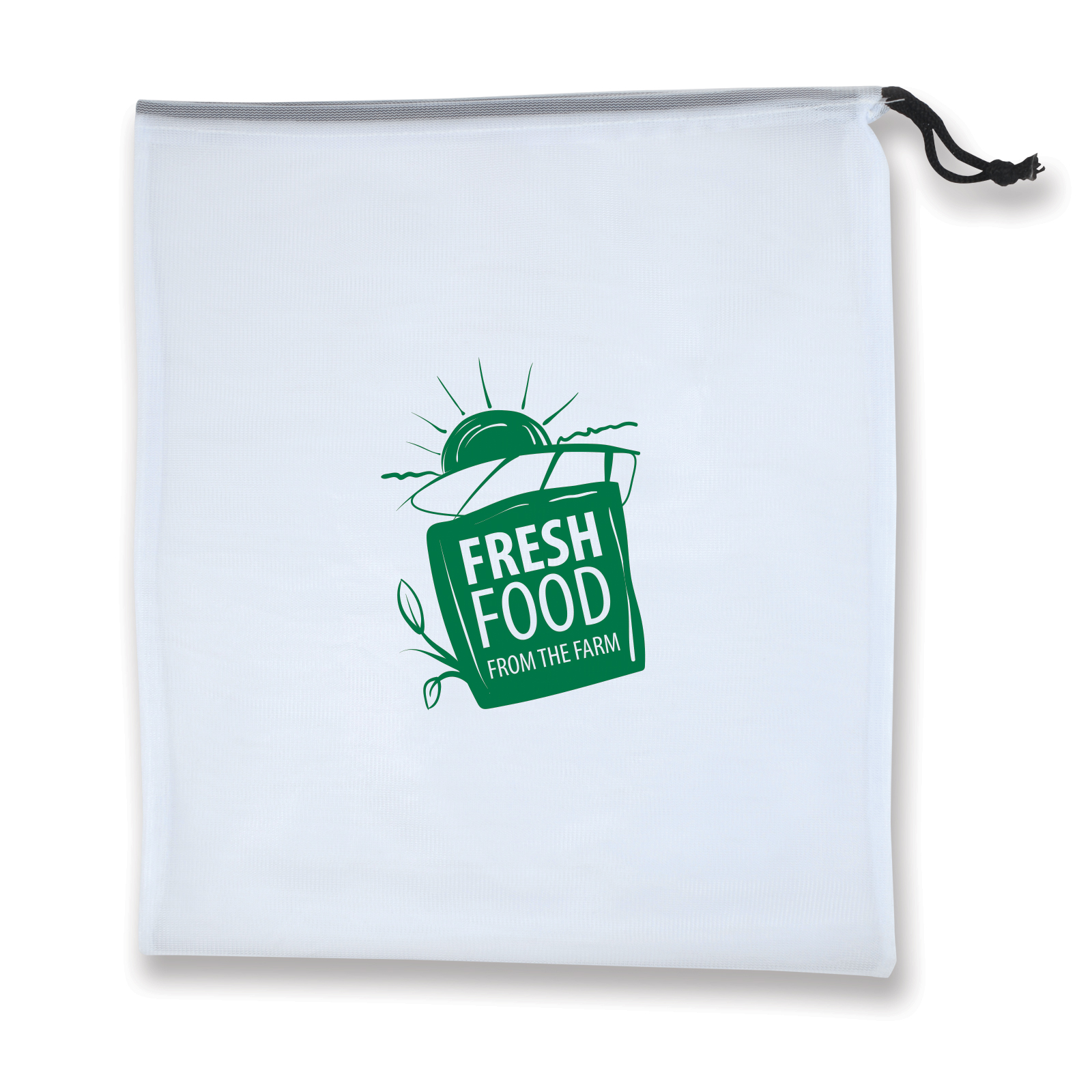 5 mesh drawstring bags in a drawstring polyester pouch. Extra large bags measure 320mmL x 360mmH. Great for a zero waste lifestyle as cuts down on single use plastic consumption. Perfect for fruit, vegetables, herbs and bulk goods. Suitable for rinsing your produce in the bag and keeping in the fridge. Air flows through the mesh weave allowing produce to breath and stay fresh longer. Multifunctional as can be used as transparent storage for travel and household items.