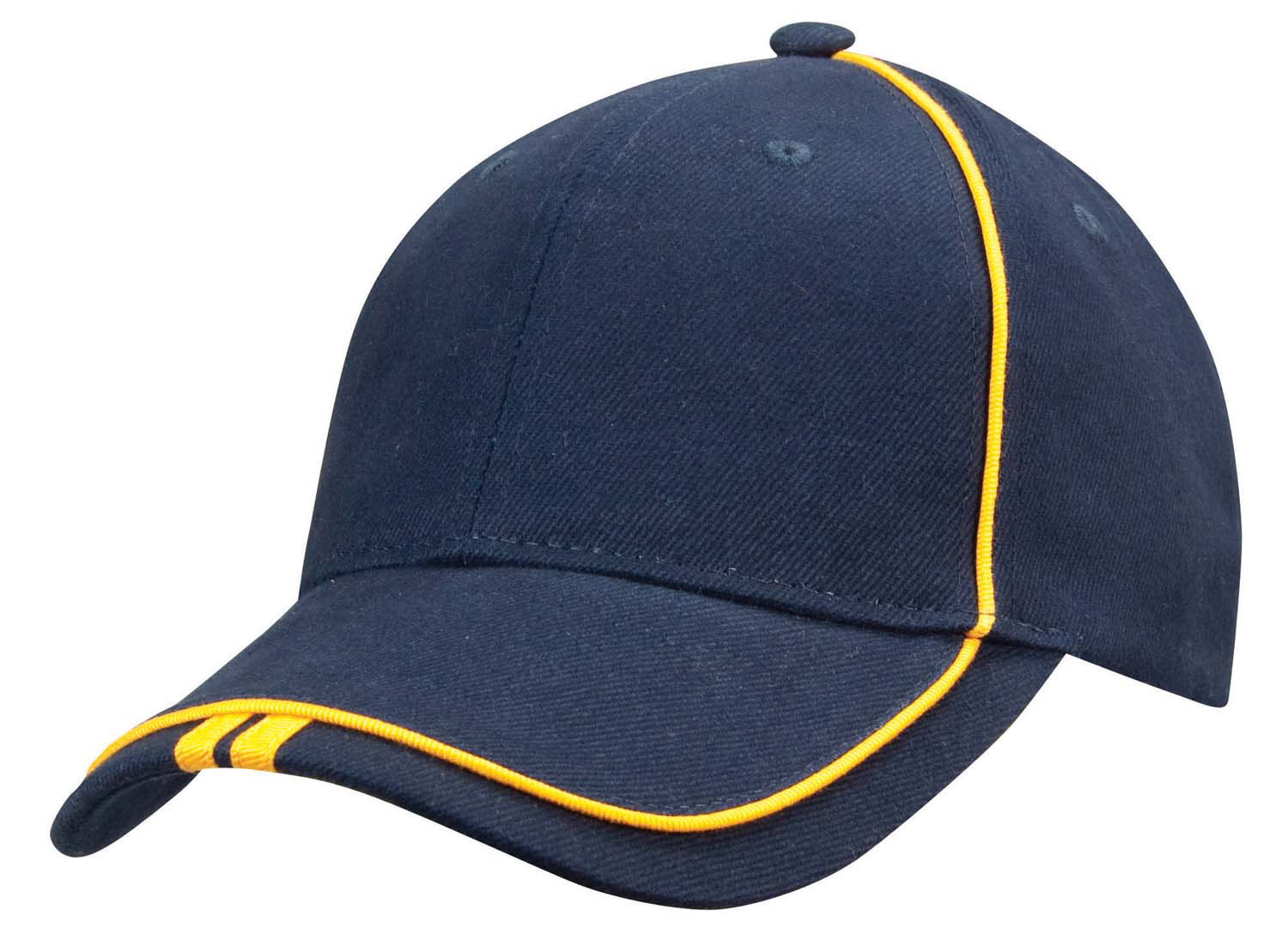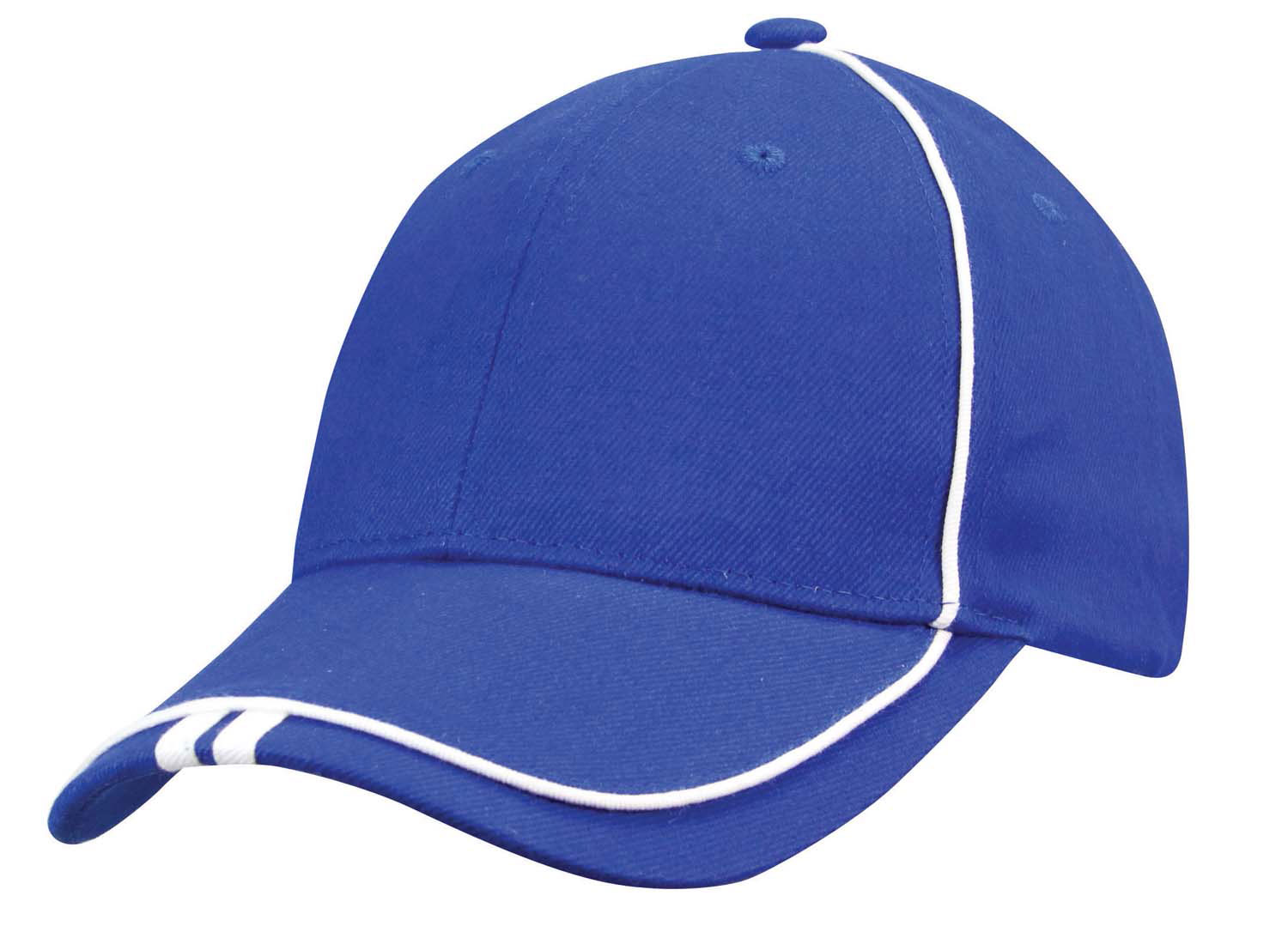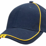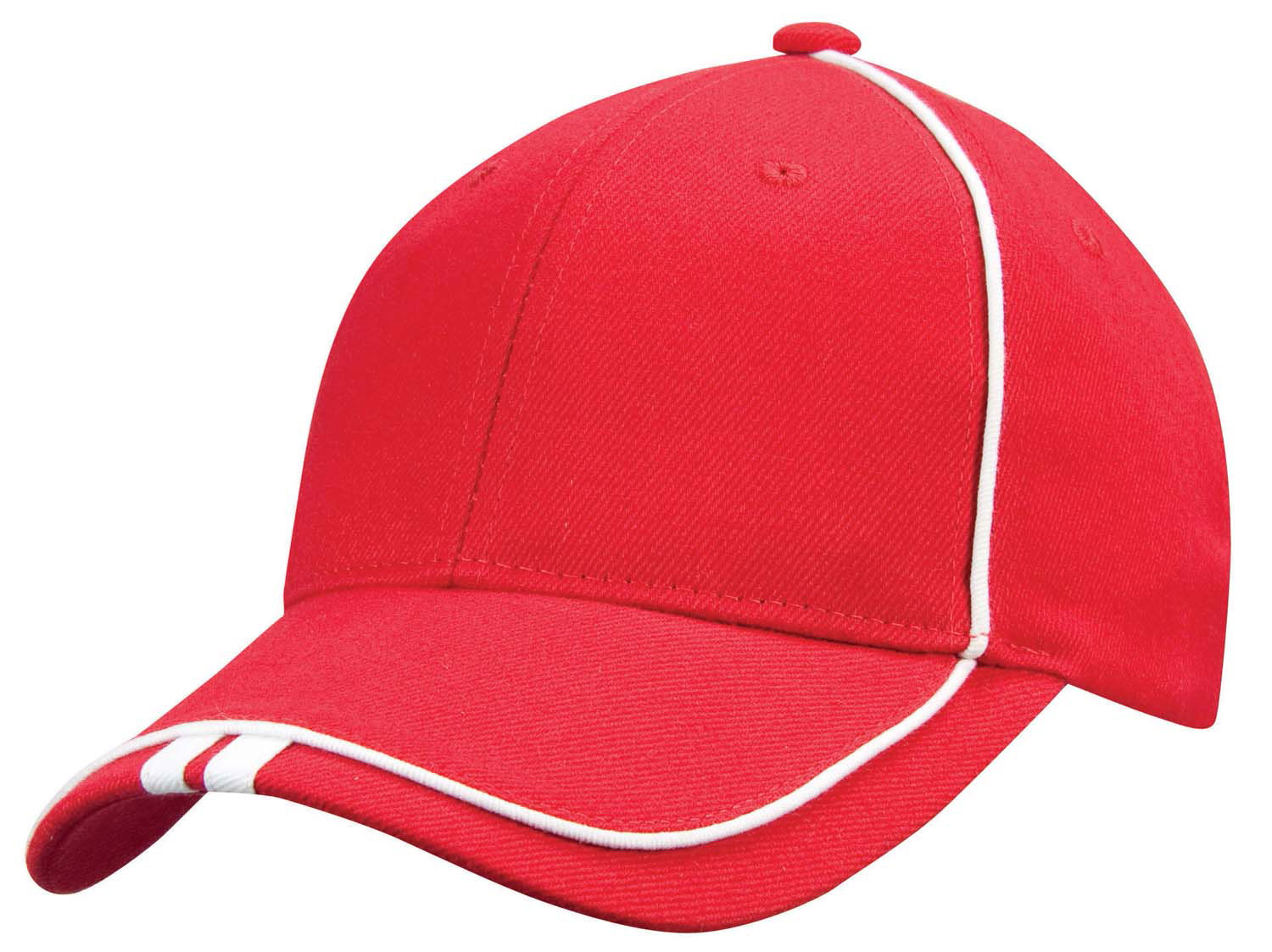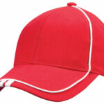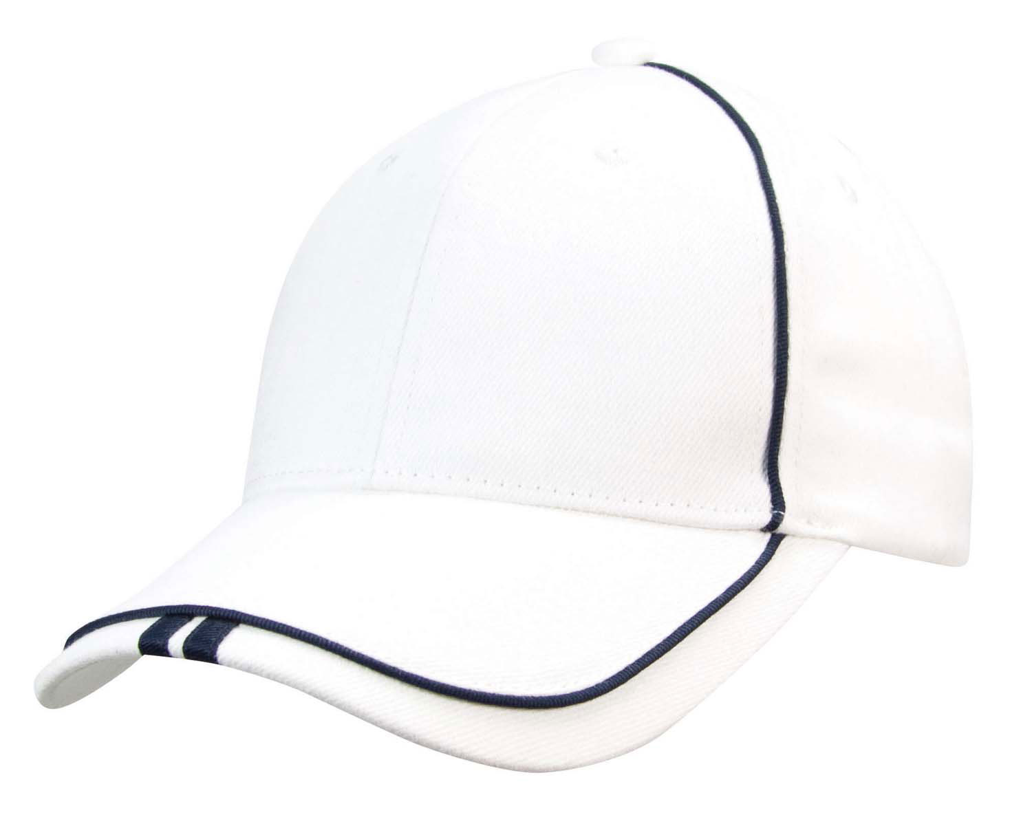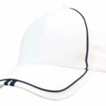 Ace your next company event with a Hat Trick Cap that will highlight your brand and your game plan. With contrast piping on crown and peak, embroidered eyelets and short velcro fastener, this six panel structured cap with pre-curved peak is sure to be a winner!