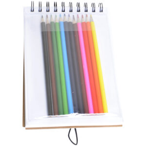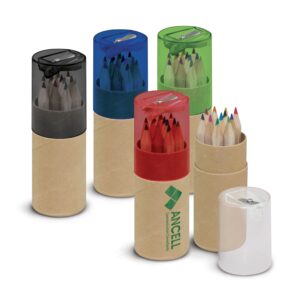 Set of four different coloured jumbo highlighter pencils in a natural kraft cardboard box. The pencils have hexagonal wooden barrels and the pack includes yellow, orange, pink and green pencils. Highlighter pencils are a long-lasting alternative to highlighter pens as they will not dry out.