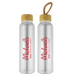 550ml Honya Glass Drink Bottle made of single-walled borosilicate glass which is suitable for both cold and hot. Transparent and pure, with comfortable touch. Free of plumbum and BPA, which is ecofriendly and a healthy drinking water style. With trendy screw on bamboo lid in either standard or rope handle design. A simple and stylish design to best promote your corporate logo and/or brand.