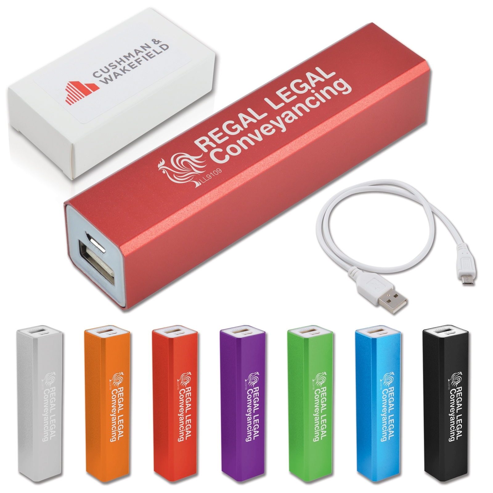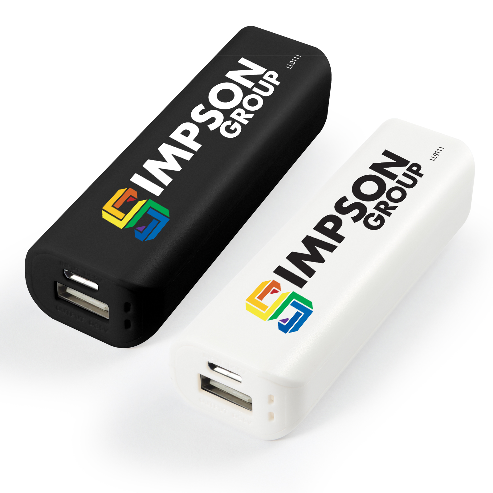 2200 mAh portable charger for your mobile phone or small device that can recharge from a USB port. Includes USB to Micro USB cable for charging Power Bank. Recharges most devices on the market between 30%-80%. White Power Bank includes White cable, Black Power Bank includes Black cable. Optional box decoration or EVA black zippered pouch available at additional cost.Cable available at additional cost:LL9091 3 in 1 Combo USB Cable - Micro, 8 Pin, Type C LL0112 2 in 1 Combo Nifty USB Cable - Micro, 8 Pin.
