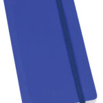 Cardboard cover notebook with matching plastic pen inserted into pages