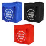 Whether you're enjoying the sunshine with a picnic, or keeping your groceries safe, this Insulated Cooler Bag includes a front pocket and is a branding essential! This personalised product will ensure premium space for your client's branding as well as temperature control to keep food fresh. To order a sample of this branded bag, give us a call today! This bag is 210D polyester. Screen printing on black bags requires a white base to be printed, then your chosen artwork on top. An initial setup, repeat set up and additional colour charge is applicable.