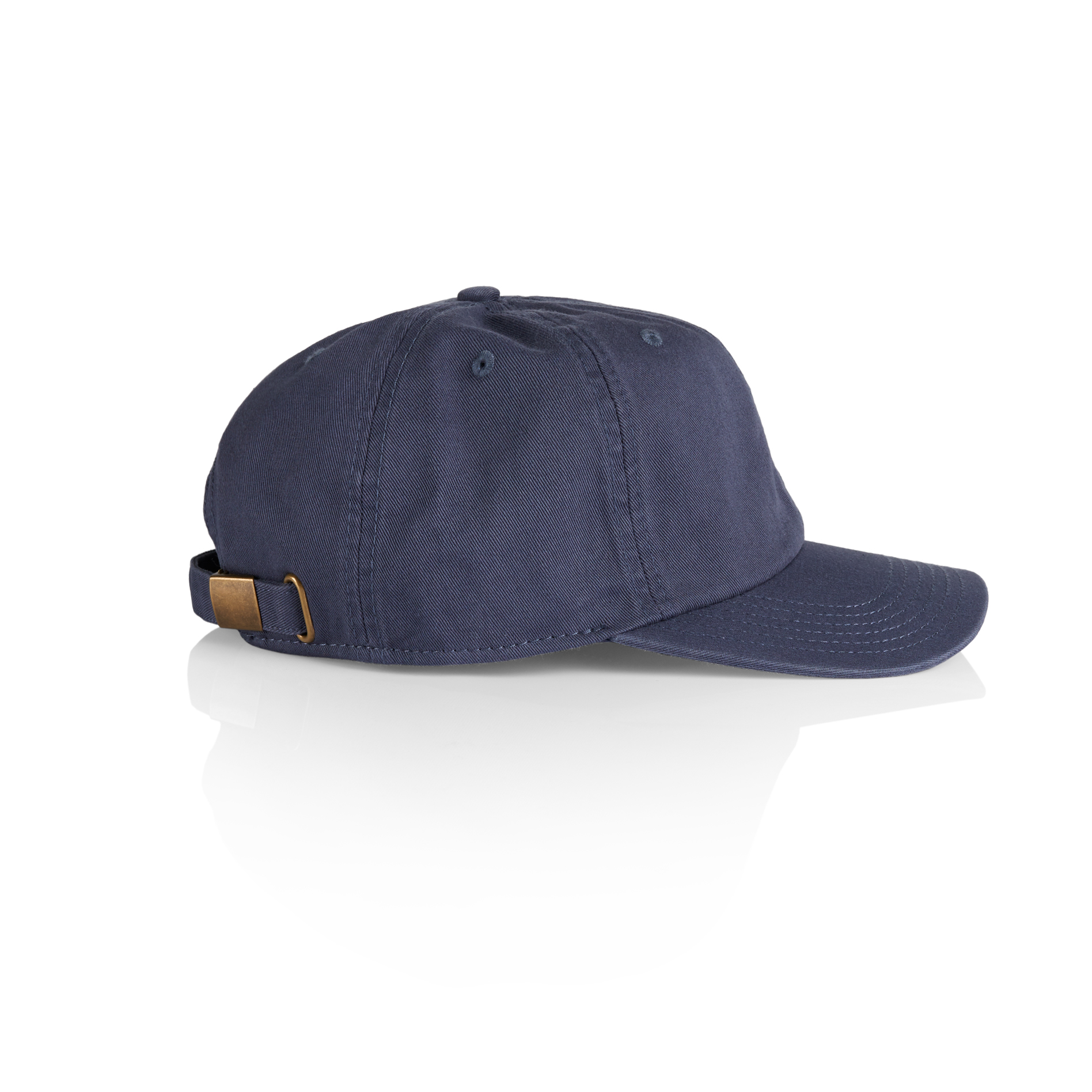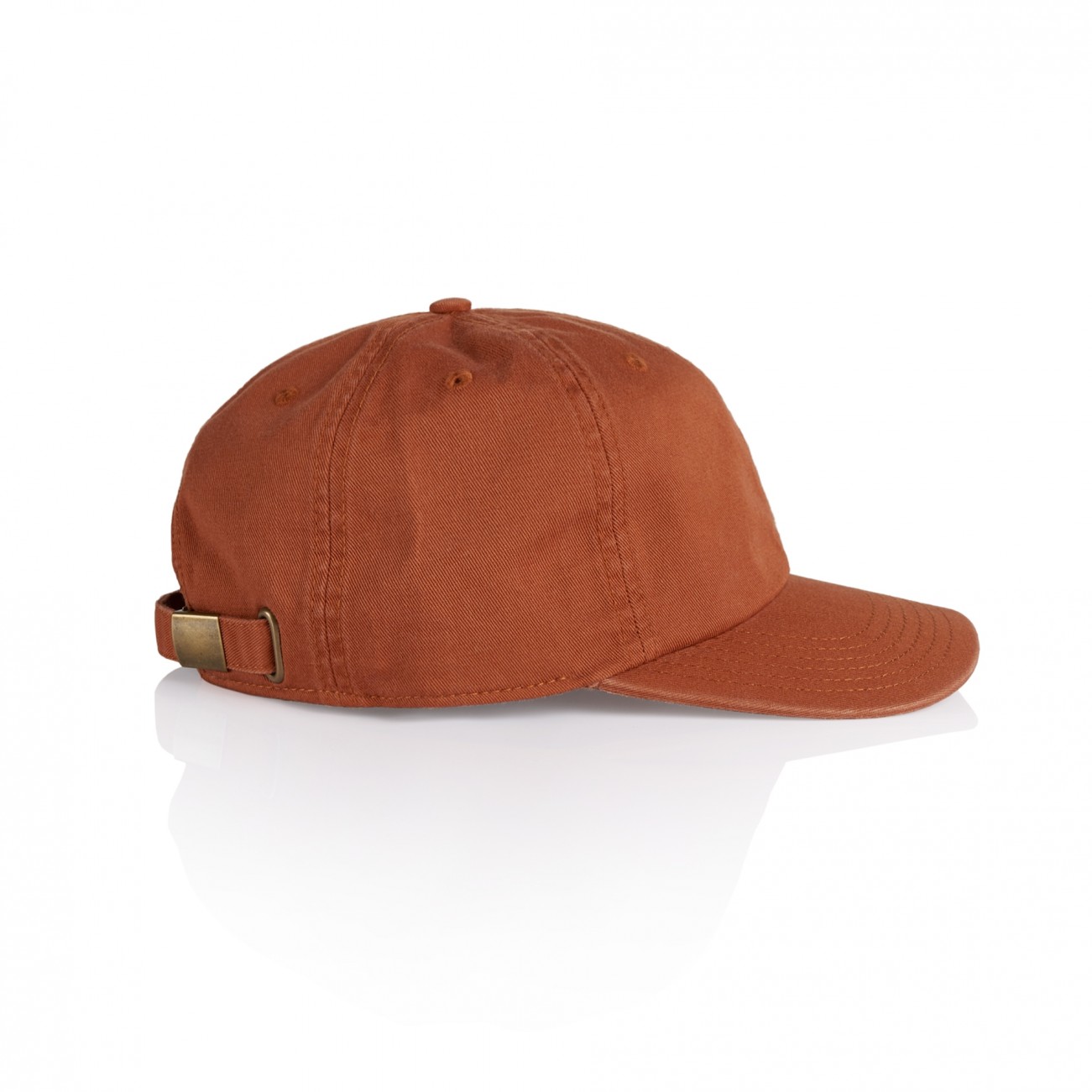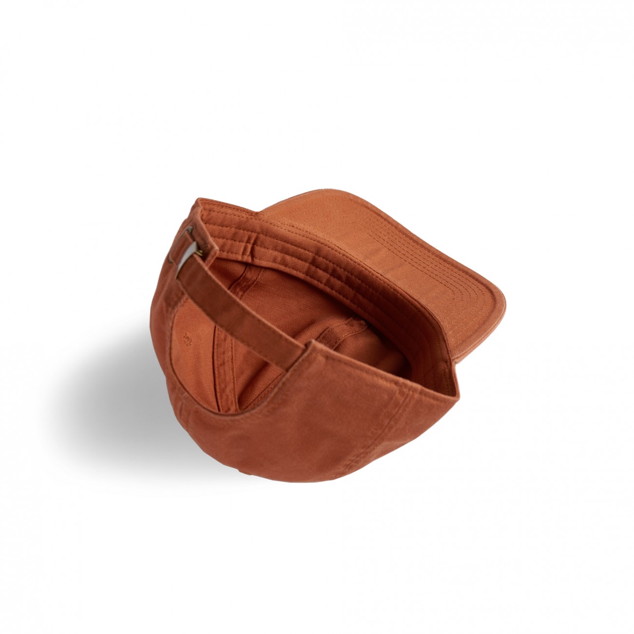 Unstructured, low profile six panel cap. Adjustable fastener with metal clasp, tonal under-peak lining Light weight, Flat Peak, 100% cotton