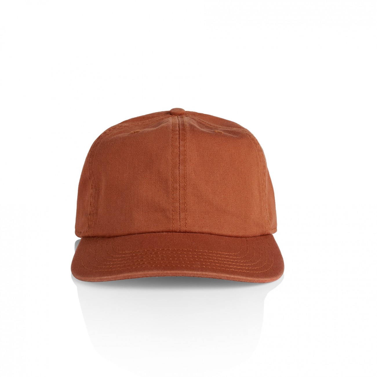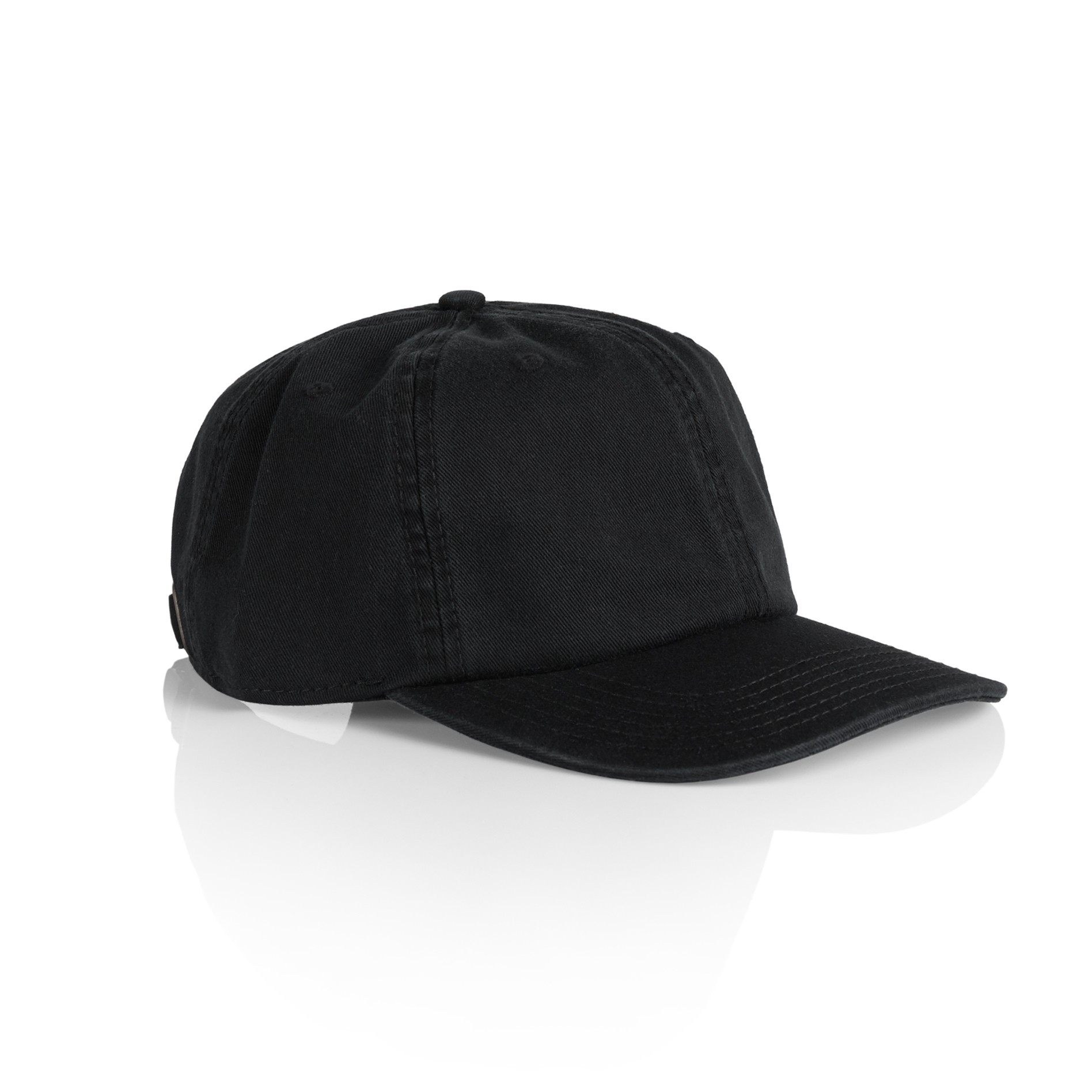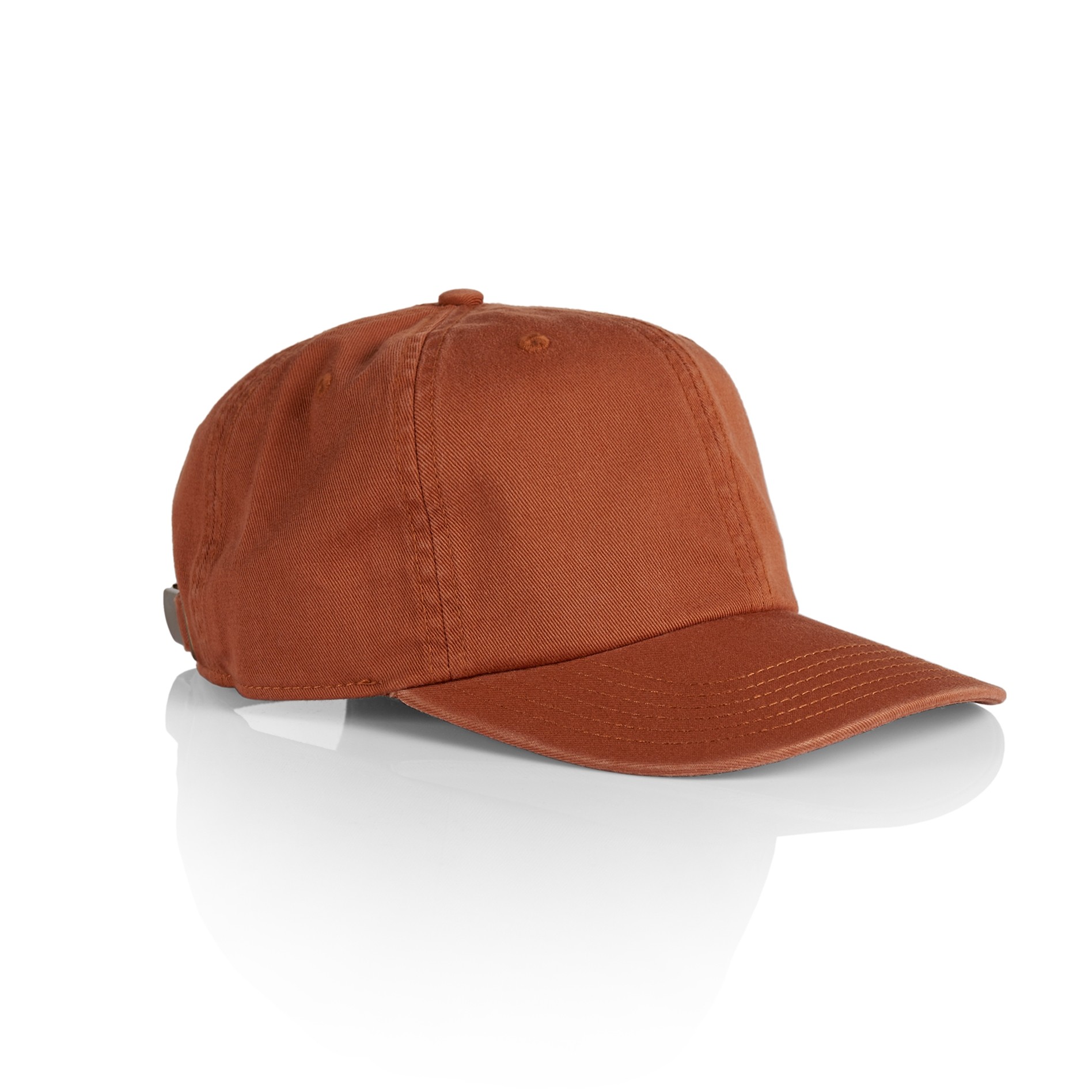 Unstructured, low profile six panel cap. Adjustable fastener with metal clasp, tonal under-peak lining Light weight, Flat Peak, 100% cotton