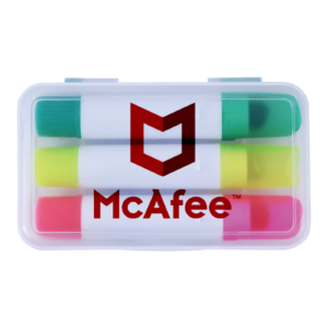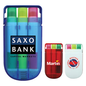 A set of 5 mini highlighters in a plastic container.
