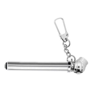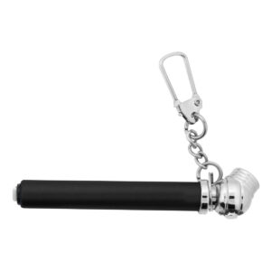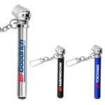 An aluminium tyre gauge with a key chain clip attachment which calculates PSI up to 75 lbs.