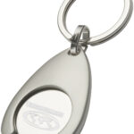 Shopping Trolley brandable coin holder keyring. No need to search for a $1 coin to be able to use a shopping trolley! This keyring holds a brandable token the same size as a $1 coin