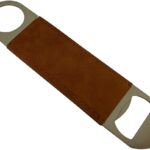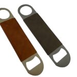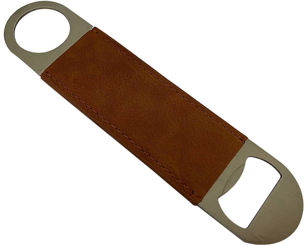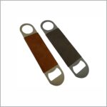 Bottle opener keychain, Iron material in satin finish. PU on both sides 1pc/poly bag, black paper box
