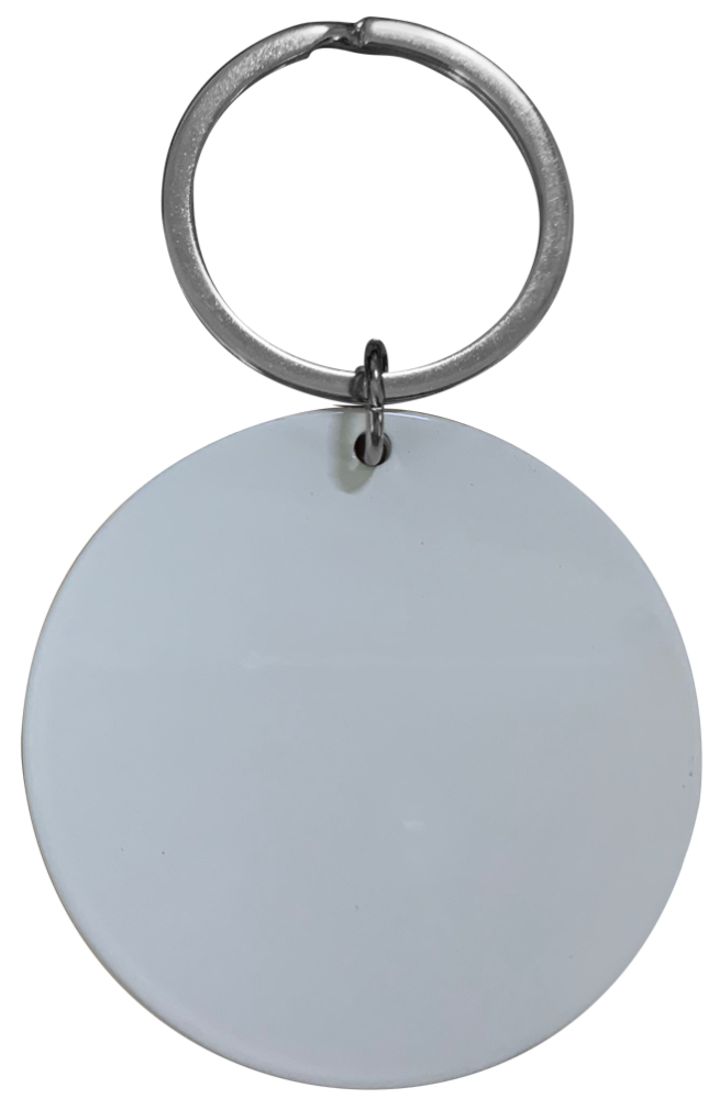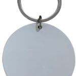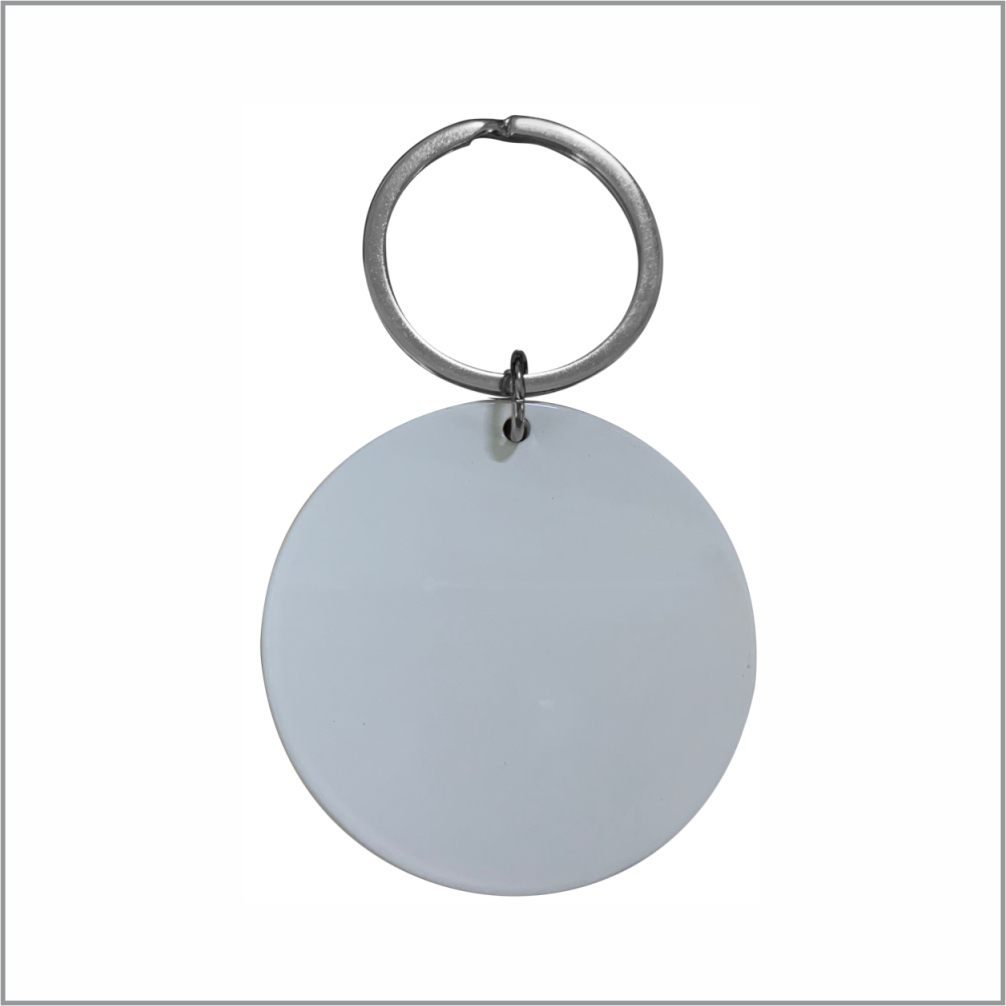 Round shape keychain, Iron material coated in white colour. 35mm flat split ring.