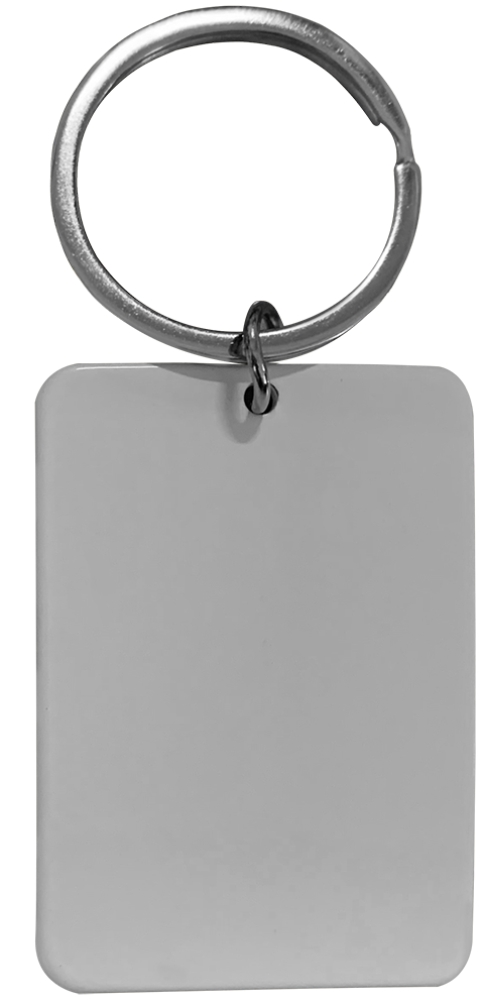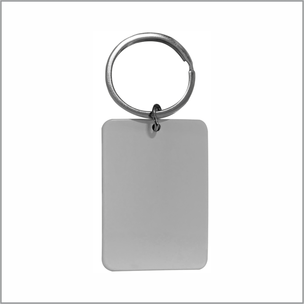 Retangle shape keychain, Iron material coated in white colour. 35mm flat split ring.