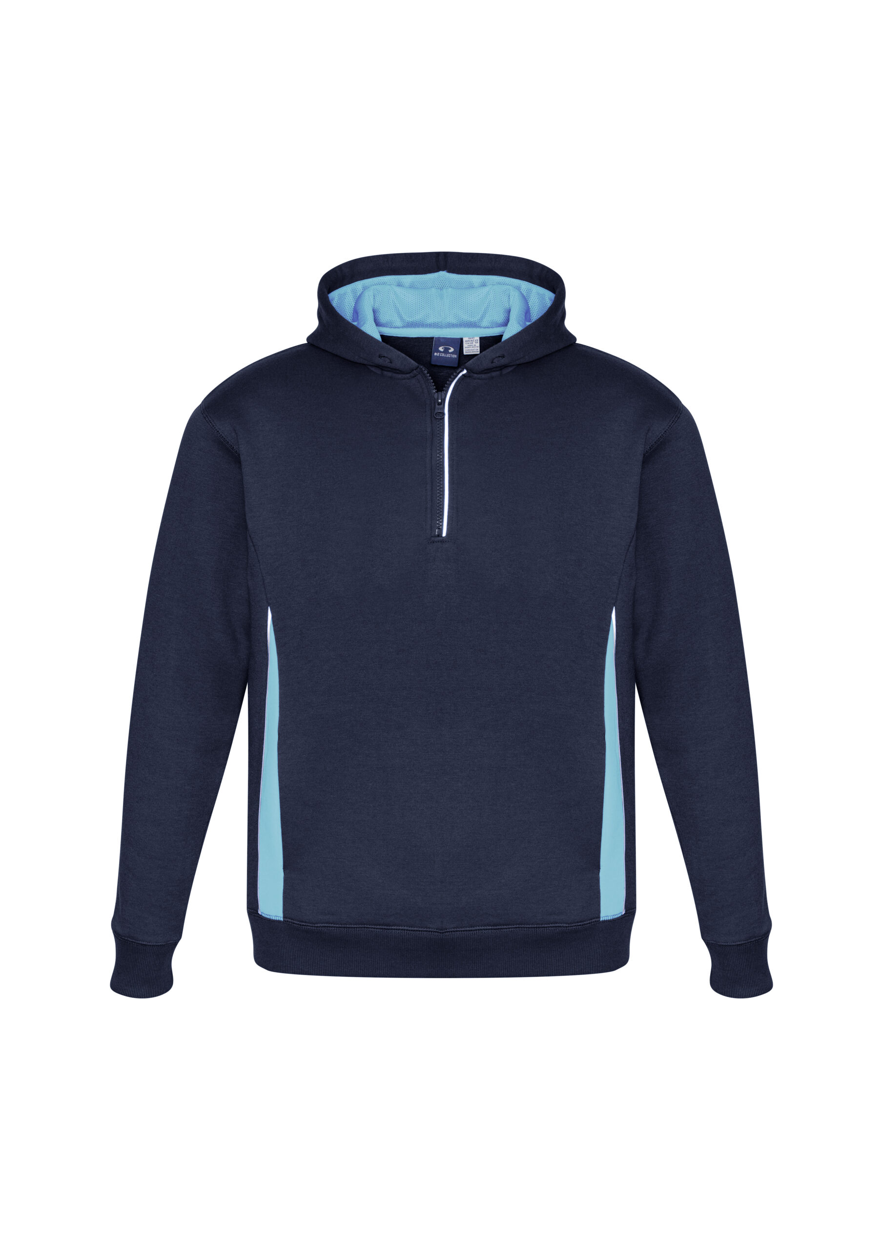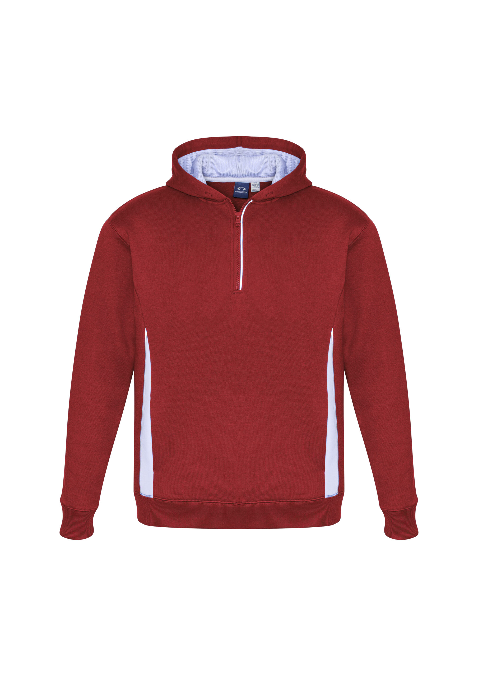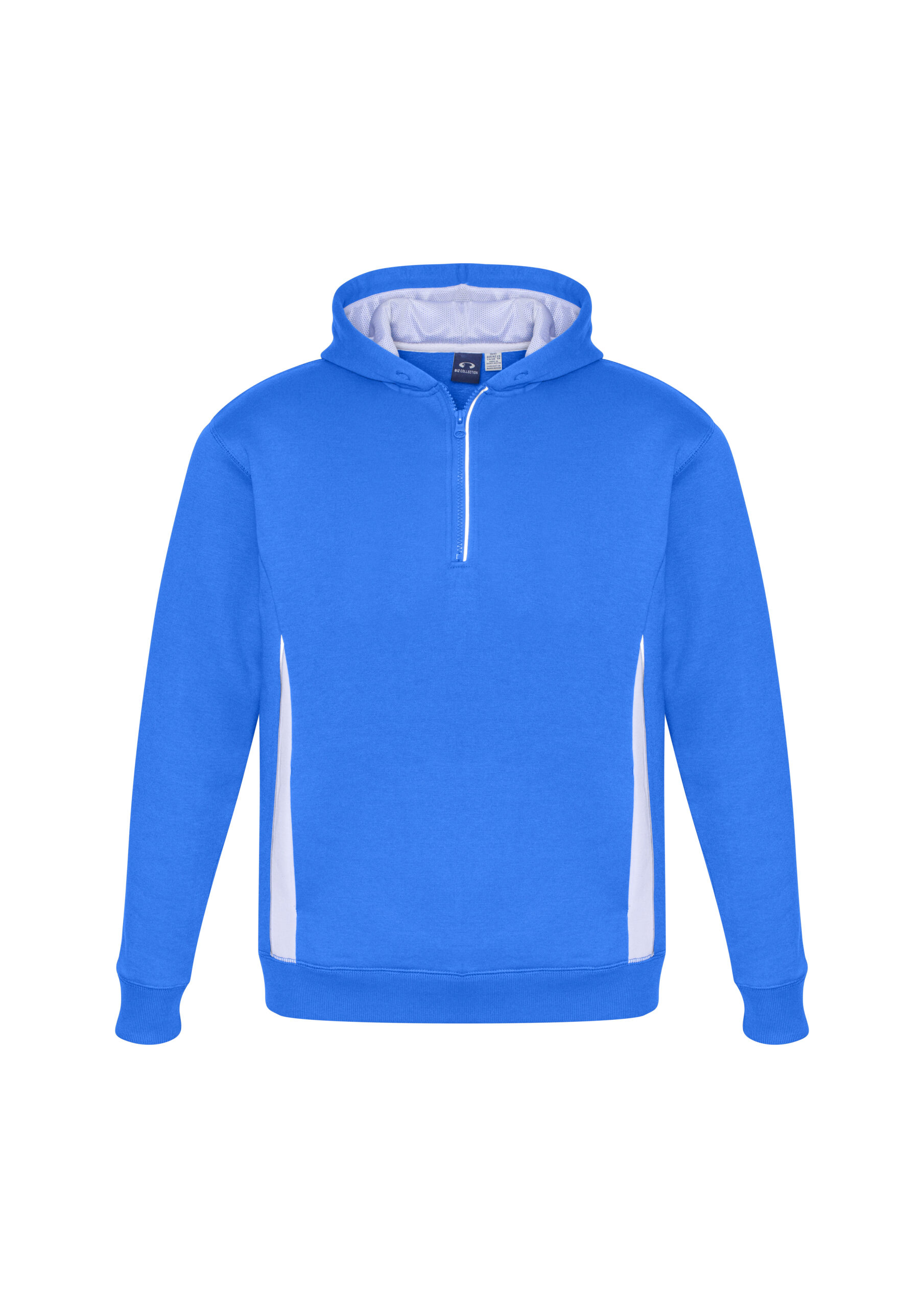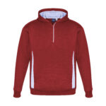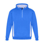 Durable 65% Polyester 35% Cotton Fleece 320 GSM UPF rating - Excellent. Features silver reflective trims help you stand out. Modern ½ zip neck for easy on & off. Hand warmer side pockets. Soft ribbed hem & cuff for a comfortable fit. Full mesh-lined hood.