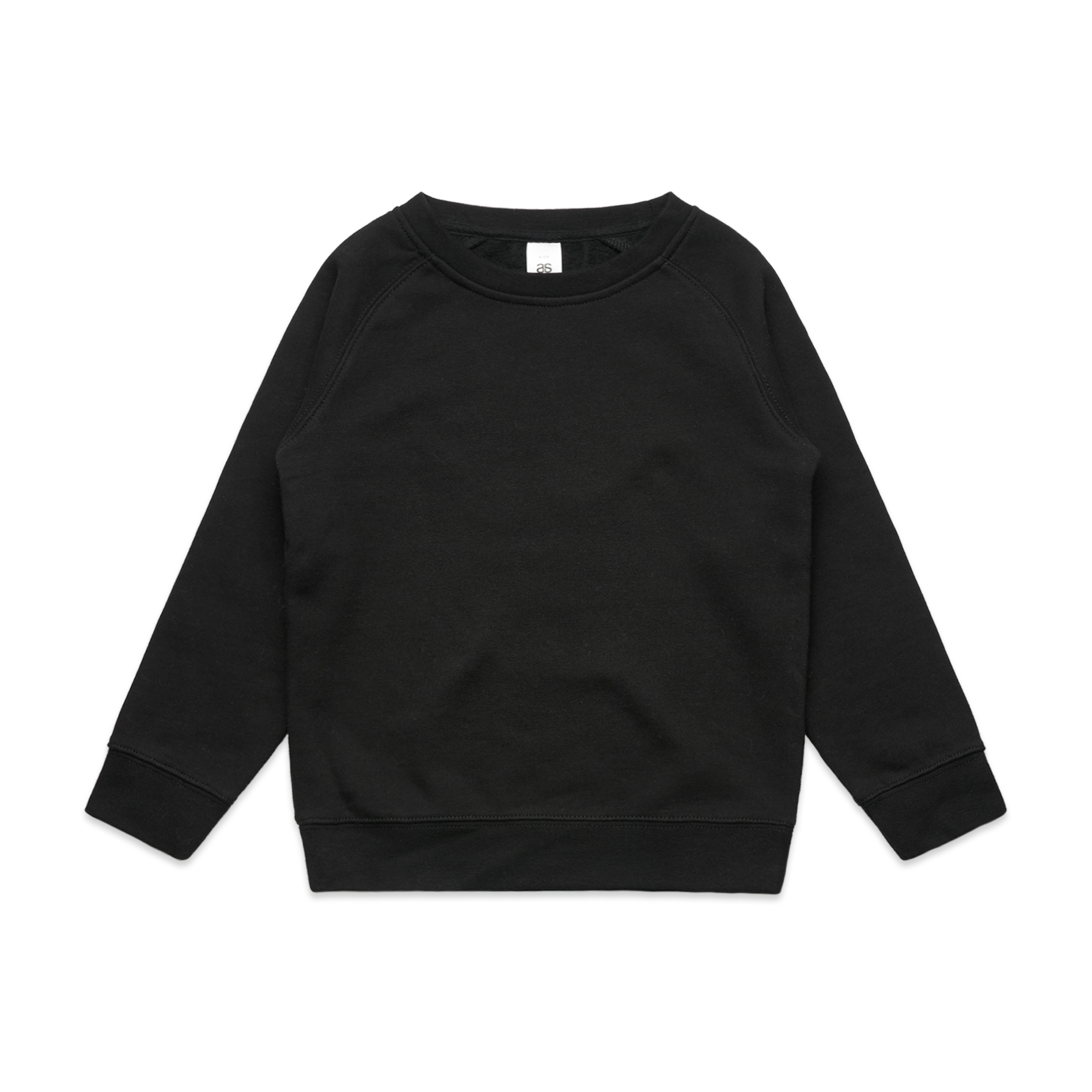 Kids regular fit crew sweat, raglan sleeves. Mid weight, 290 GSM. 80% cotton 20% polyester anti-pill fleece. Neck and sleeve cuff ribbing, preshrunk to minimise shrinkage