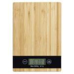 The ideal bamboo kitchen scales featuring a digital display. 5,000 gram capacity, weighing both dry and liquid ingredients. Easy to read and non-slip rubber feet. Required 2x AAA batteries, which are not included. Features auto power off and low batter and overload indications. User manual included.
