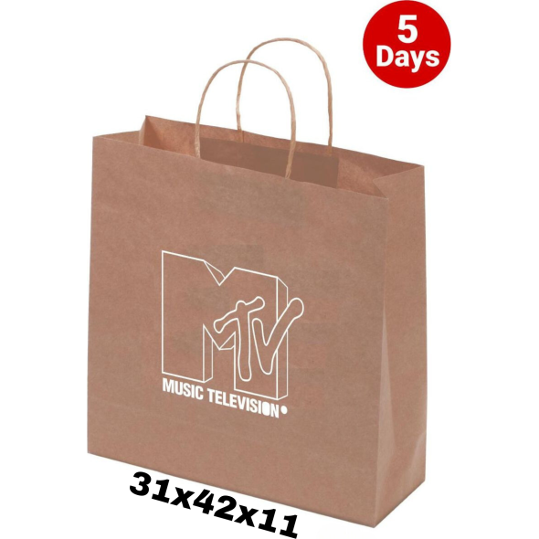 If you’re product is wide than tall, this brown paper bag is right for your business. A landscape oriented paper bag, this Kraft Paper Brown Bag features twisted paper handles. It can be customised to have your brand and logo screen printed.