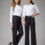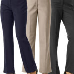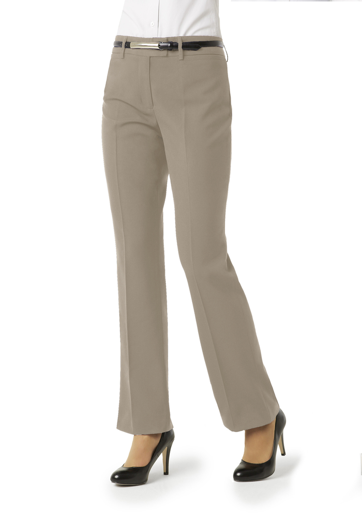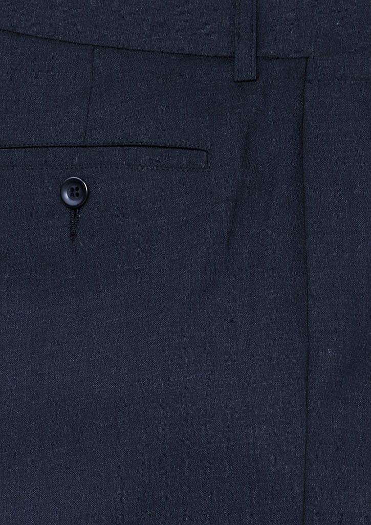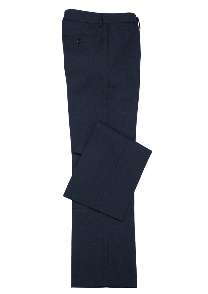 65% Polyester, 35% Viscose - Easy Care Fabric. Mechanical stretch fabric for extra comfort, slightly lower waist fit with straight leg, ready-to-wear with finished hem, front welt pockets and single welt back hip pocket, wider seams and 5cm (1.9in) hem allowance for easy alterations.