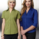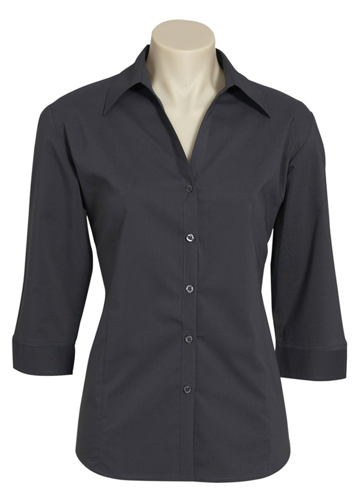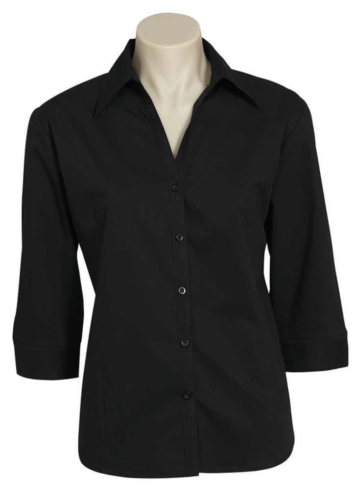 65% Cotton, 30% Polyester, 5% Elastane, UPF rating - Very Good. Open neckline with slimline placket, cuffed sleeve and curved hemline