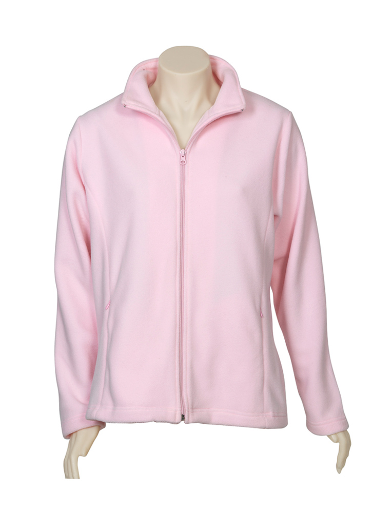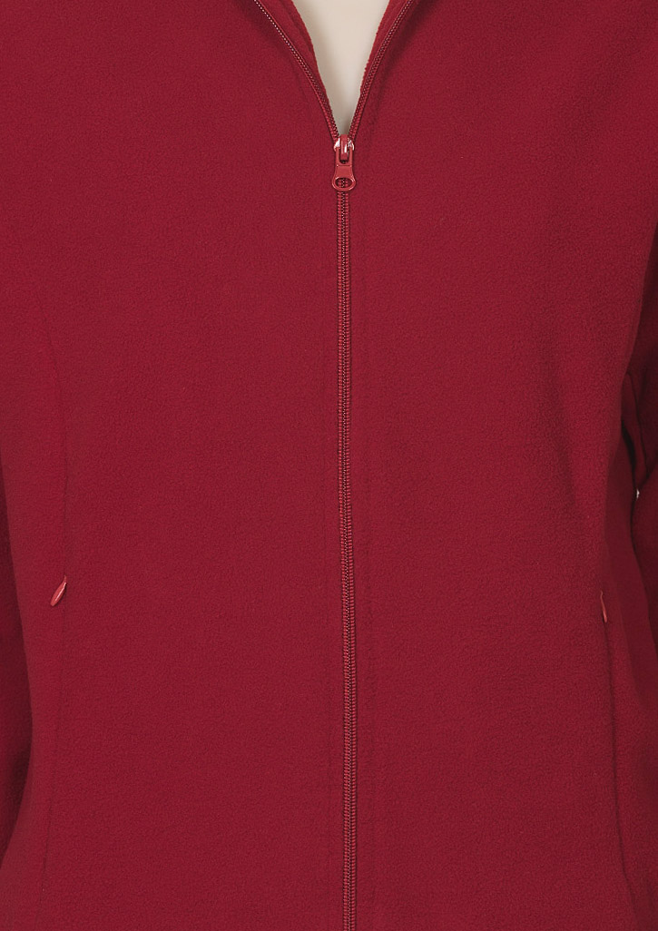 100% Polyester Low Pill Micro Fleece, 285 GSM. Matching full length front zipper, shaped for women with panel details at sides, concealed front pockets with invisible zippers.