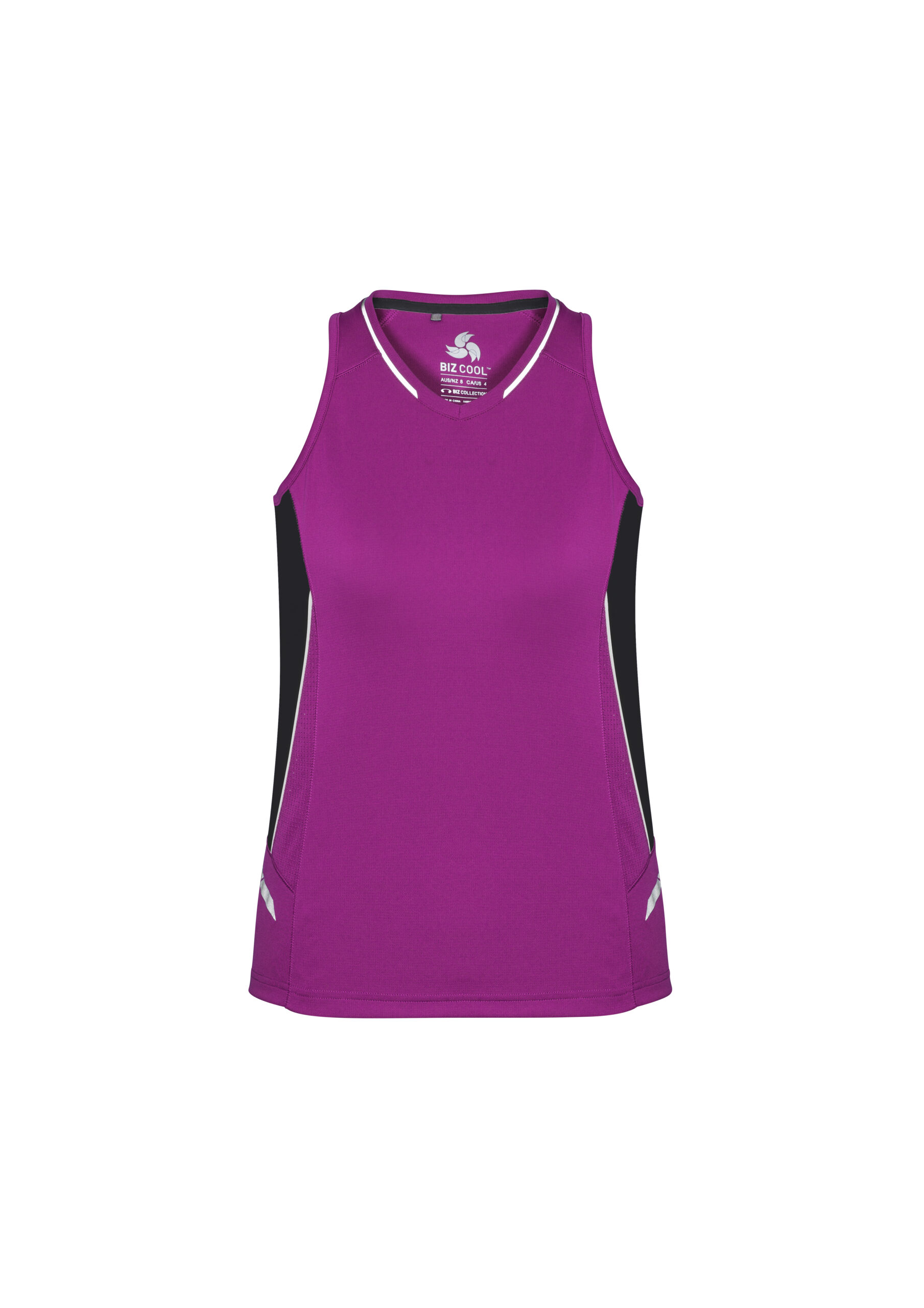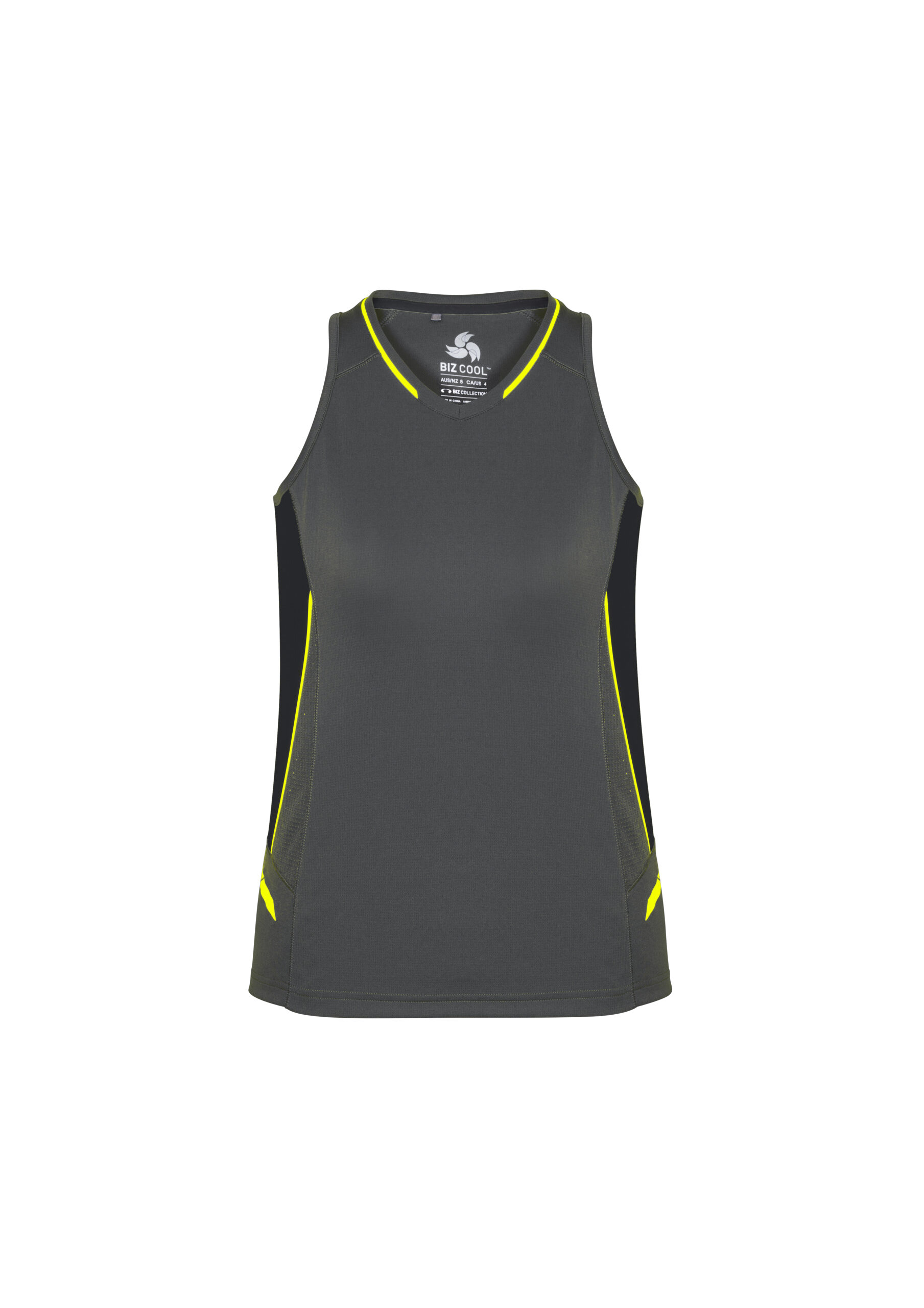 100% BIZ COOL™ Micro Polyester 155 GSM UPF rating - Excellent. Features silver reflective trims help you stand out. Dynamic design with bold colour contrast. Mesh side panels for greater air flow. Comfortable crew neck, not too high or low. Racer back design for women provides maximum motion.