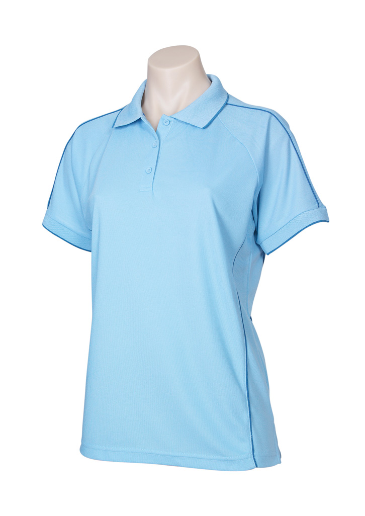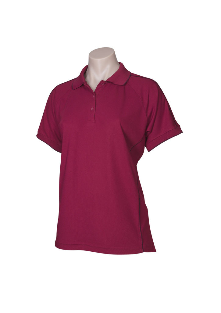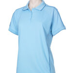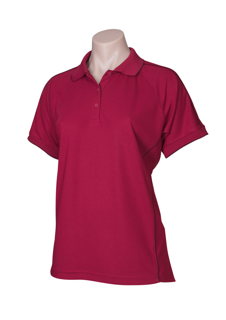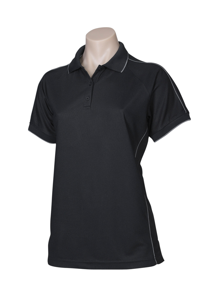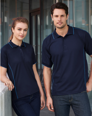 BIZ COOL™ 100% Breathable Polyester Sports Knit. 160 GSM, UPF rating - Very Good, raglan polo with tonal piping, tipped knitted collar and knitted cuff with single stripe, slimline 3 button placket.