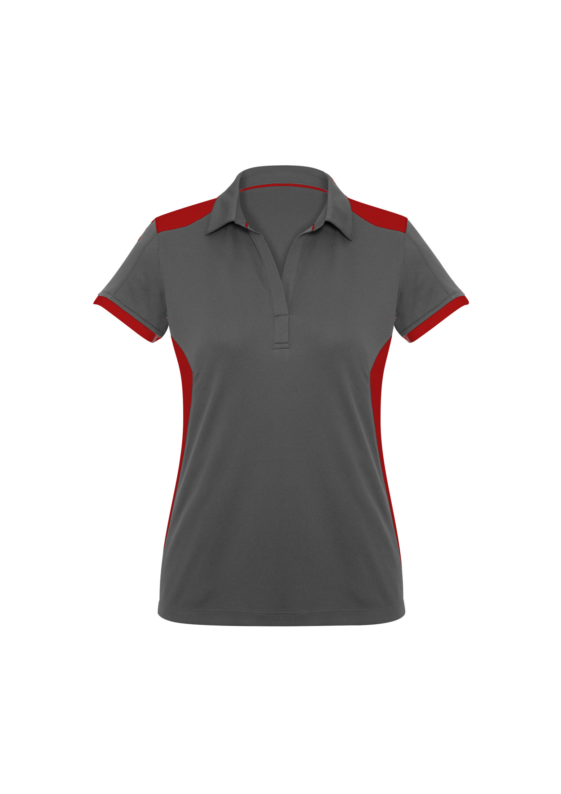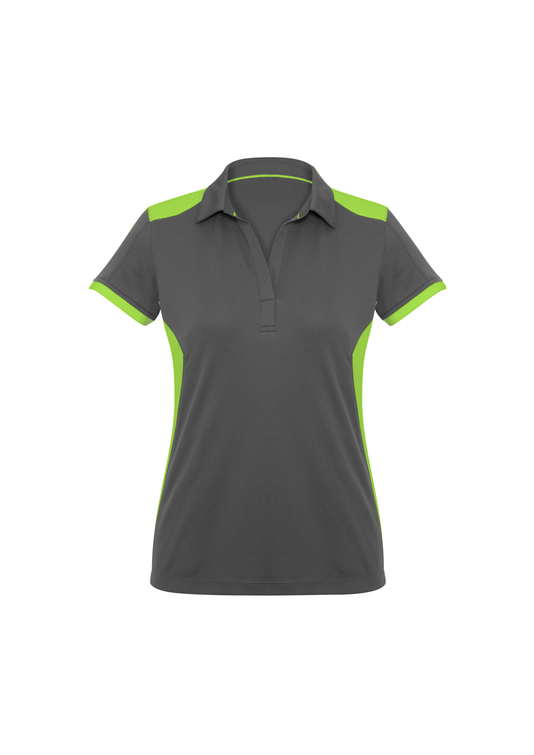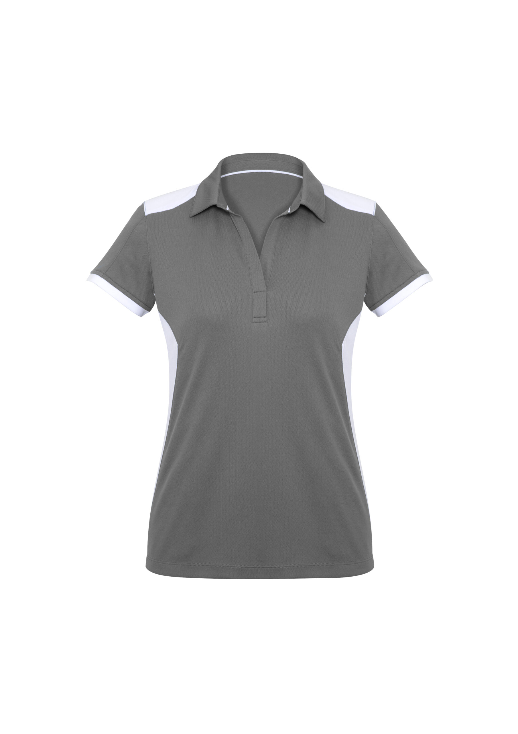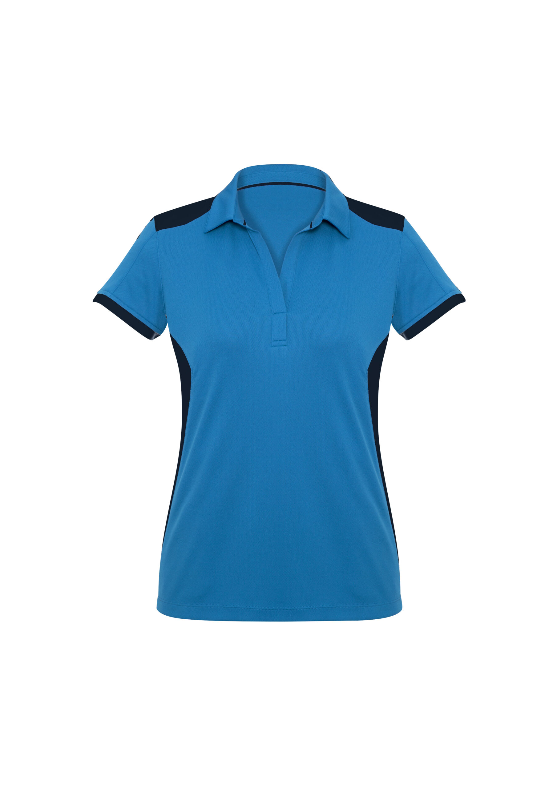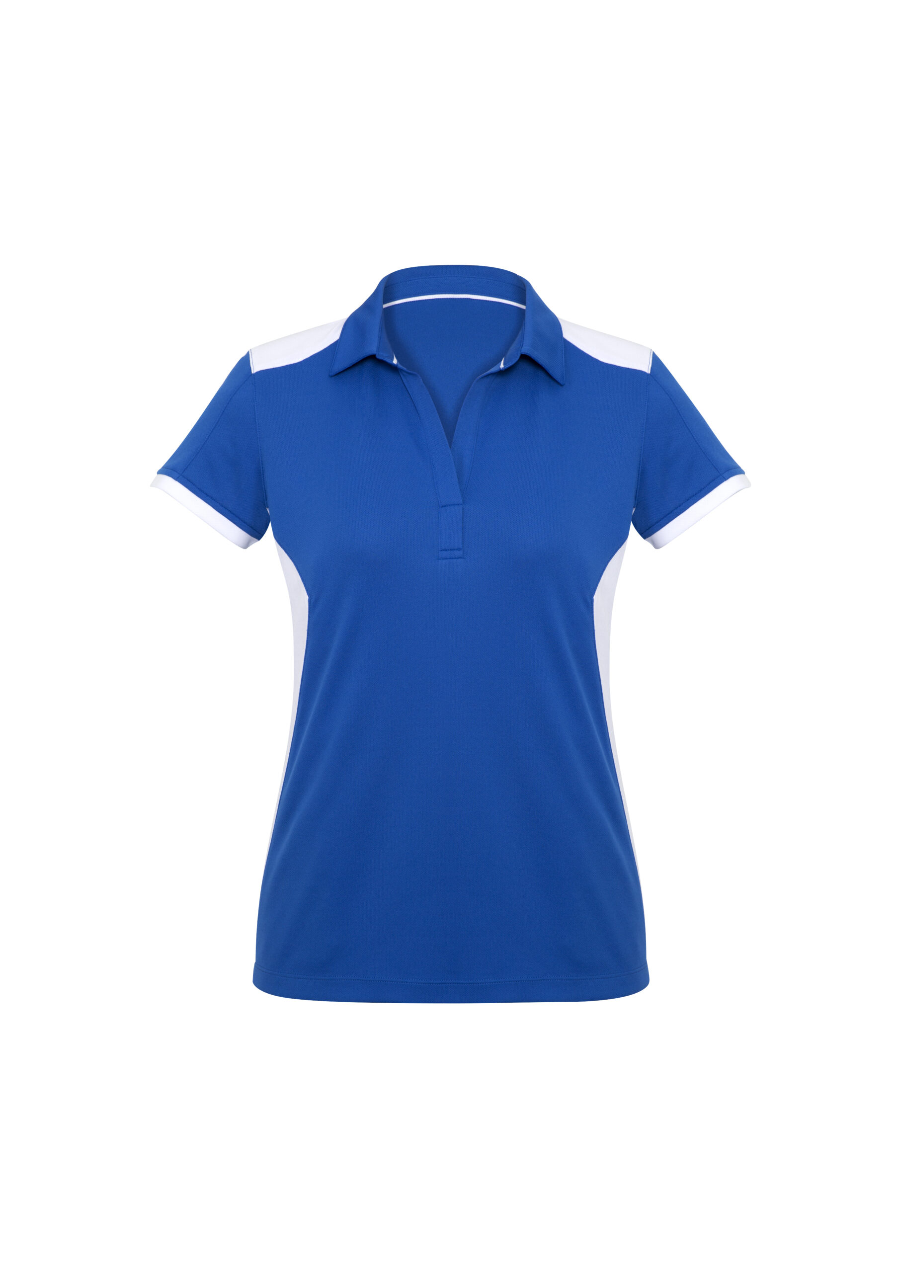 100% BIZ COOL™ Polyester Micro Interlock. 145 GSM, UPF rating - Excellent, bold contrast panel design, self fabric collar and contrast sleeve cuff,ladies style features Y-line placket.