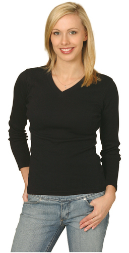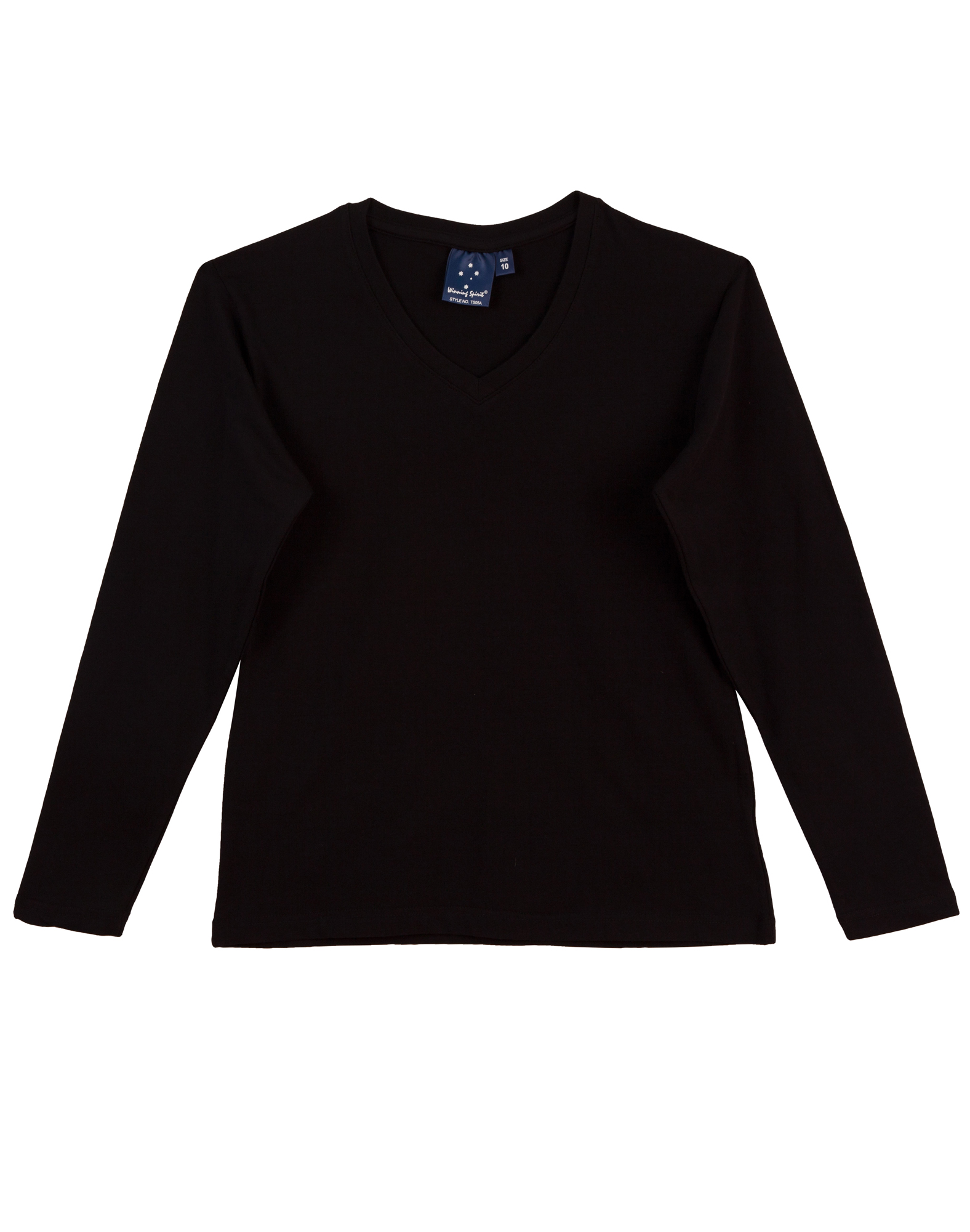 180gsm 95% Cotton, 5% Elastane Ladies' V-Neck Stretch Long Sleeve Tee